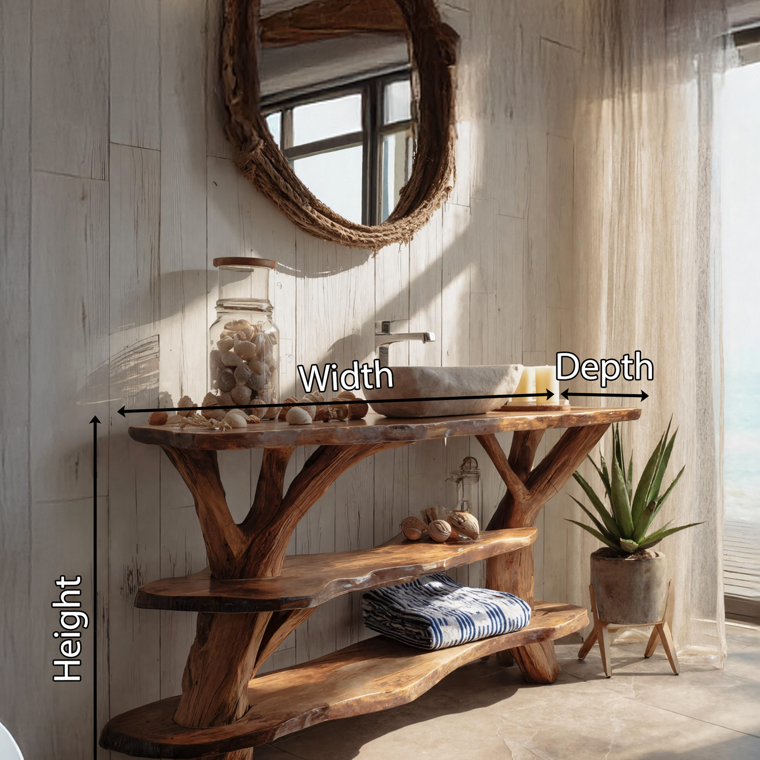 Revitalize your bathroom with our Handmade Wooden Bathroom Vanity, a perfect fusion of rustic charm and modern elegance. This vanity is thoughtfully designed to enhance both the style and functionality of your bathroom, making it a standout piece in any modern home.