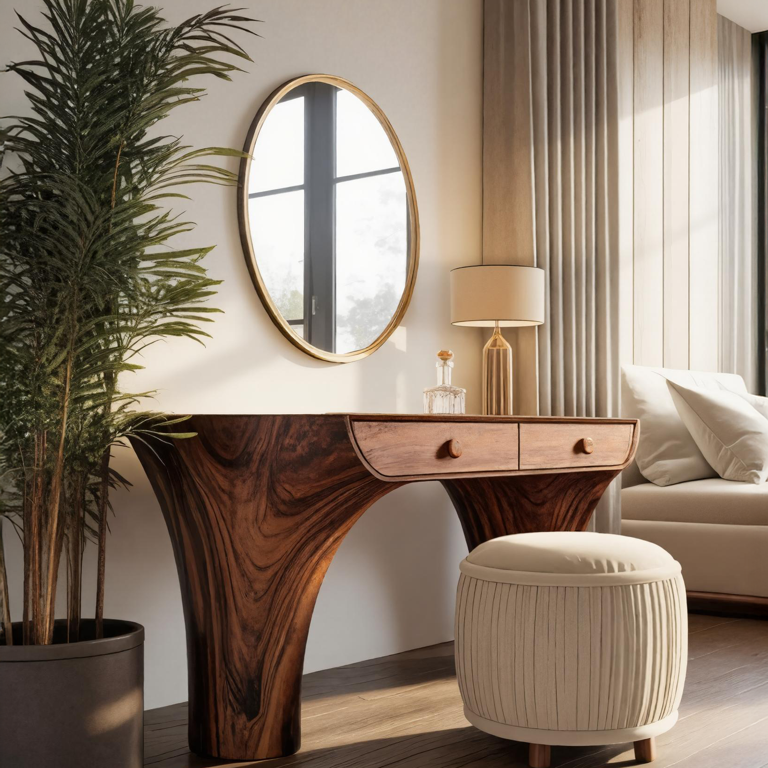 Experience the harmony of art and function with our Modern Handmade Vanity Desk For Bedroom, a statement piece thoughtfully designed to bring sculptural beauty and natural warmth to your interior. With its fluid curves and refined craftsmanship, this vanity enhances any personal space with quiet elegance and visual balance.