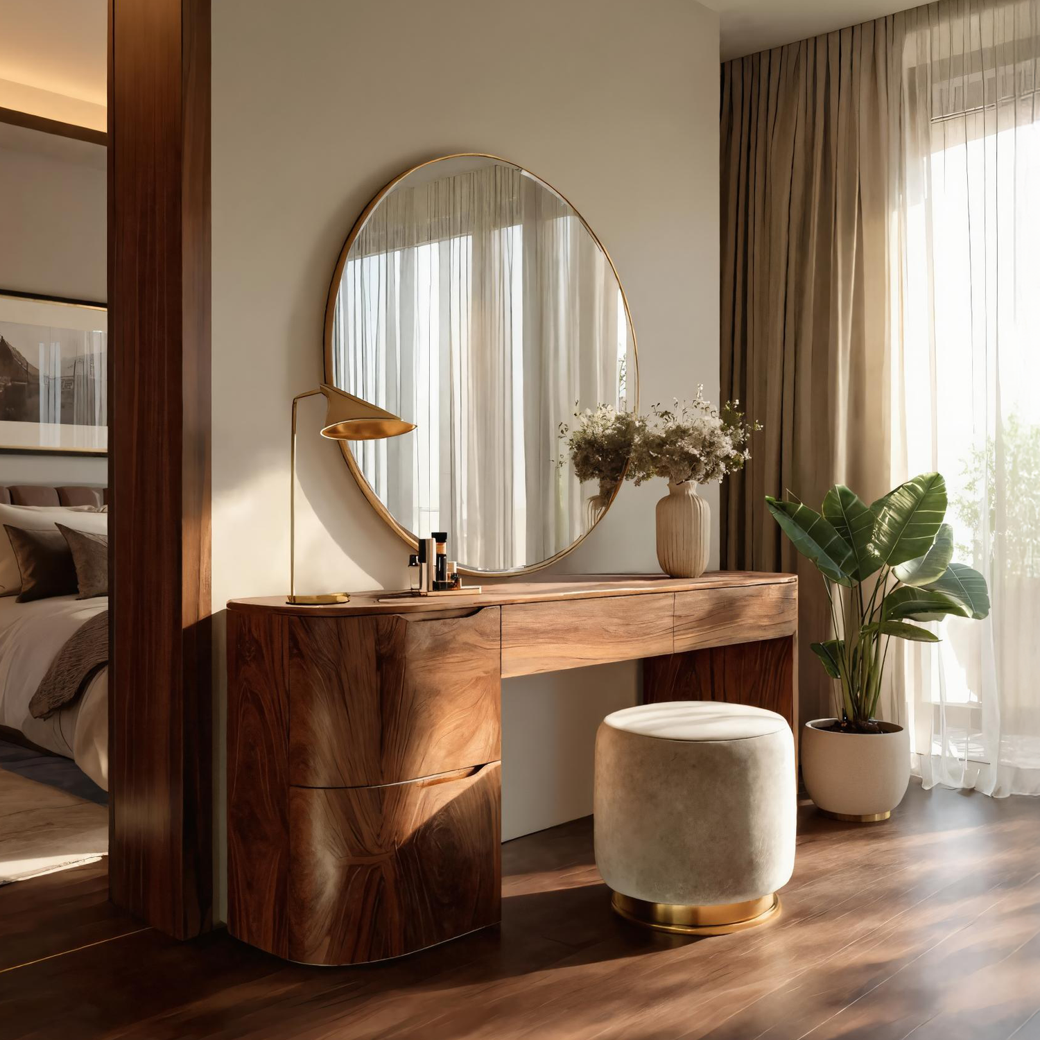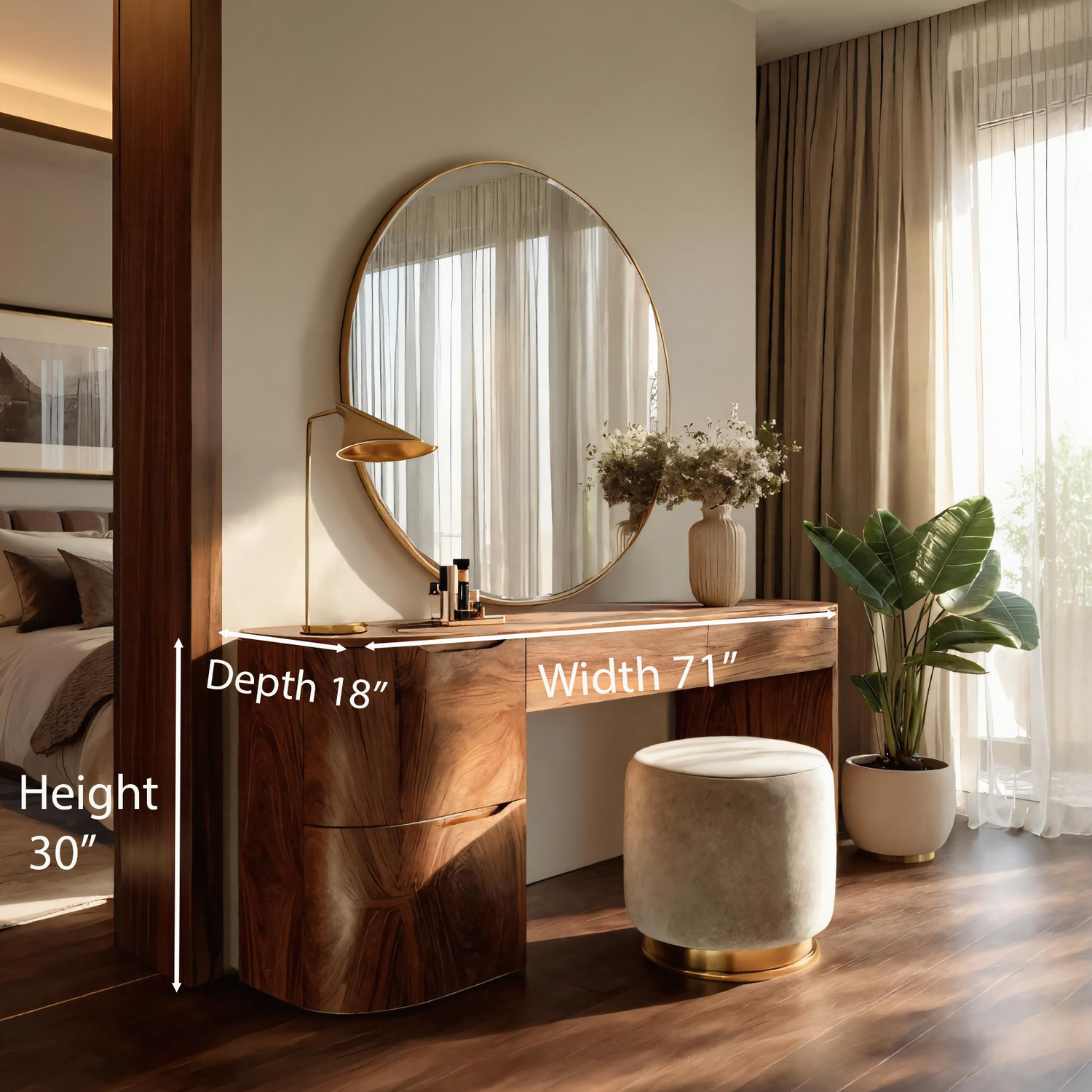 Introduce timeless elegance into your home with our Modern Handmade Vanity Table With Drawers For Bedroom, a piece that blends contemporary refinement with natural warmth. Designed with clean lines and subtle curves, it creates a calming focal point for your personal space.