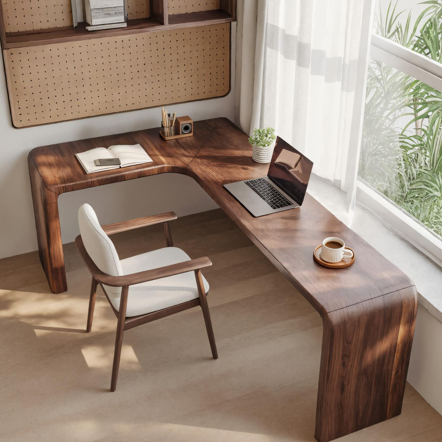 Discover the harmony of form and function with our Modern L Shaped Desk With Smooth Curves For Home Office, crafted to enhance focus while adding an artistic presence to your interior. Its fluid design and expansive layout bring warmth, balance, and timeless elegance to any creative or professional setting.