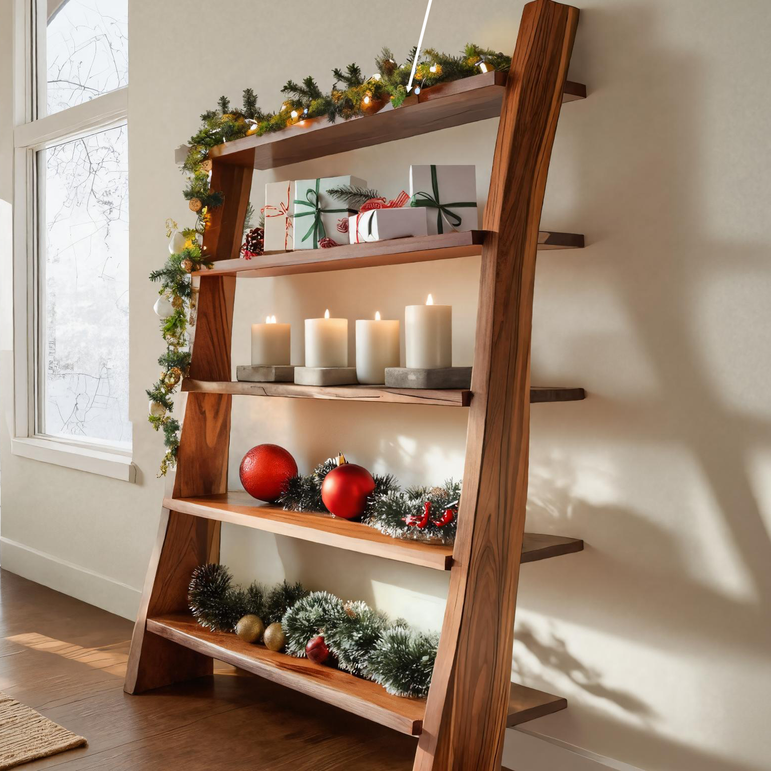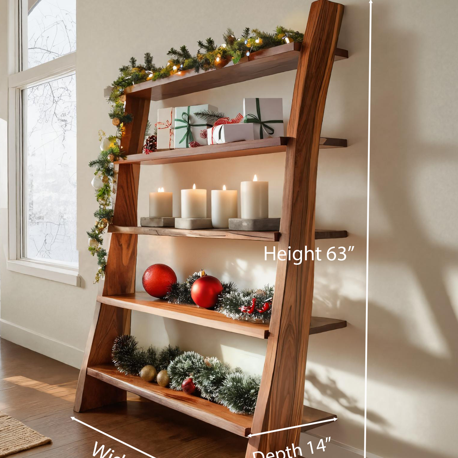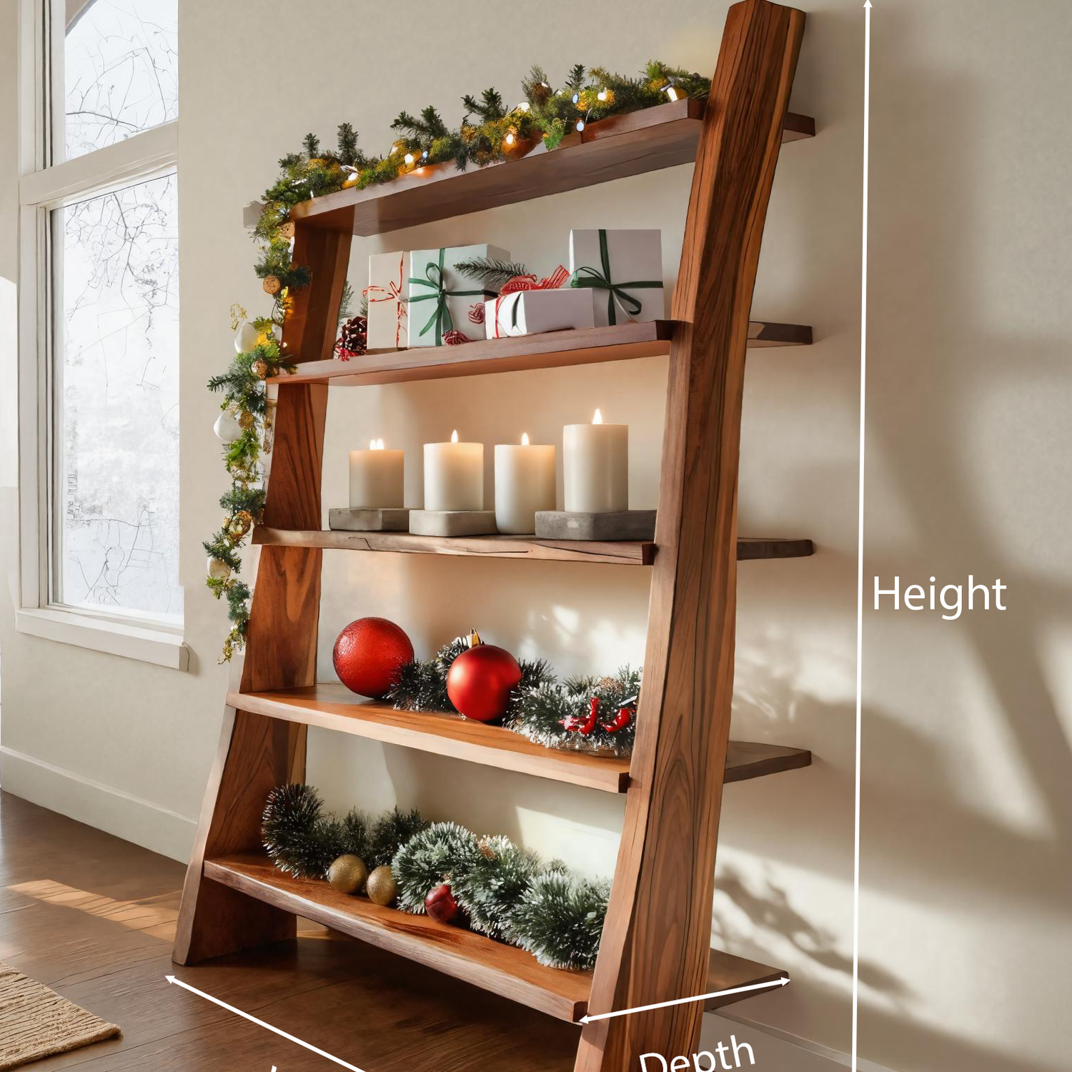 Add structure and warmth to your festive décor with our Modern Leaning Shelf For Holiday Decorative Display, a clean yet expressive piece that balances form and functionality. Its angled frame and open tiers offer a graceful way to showcase seasonal ornaments, candles, and greenery in any living space.