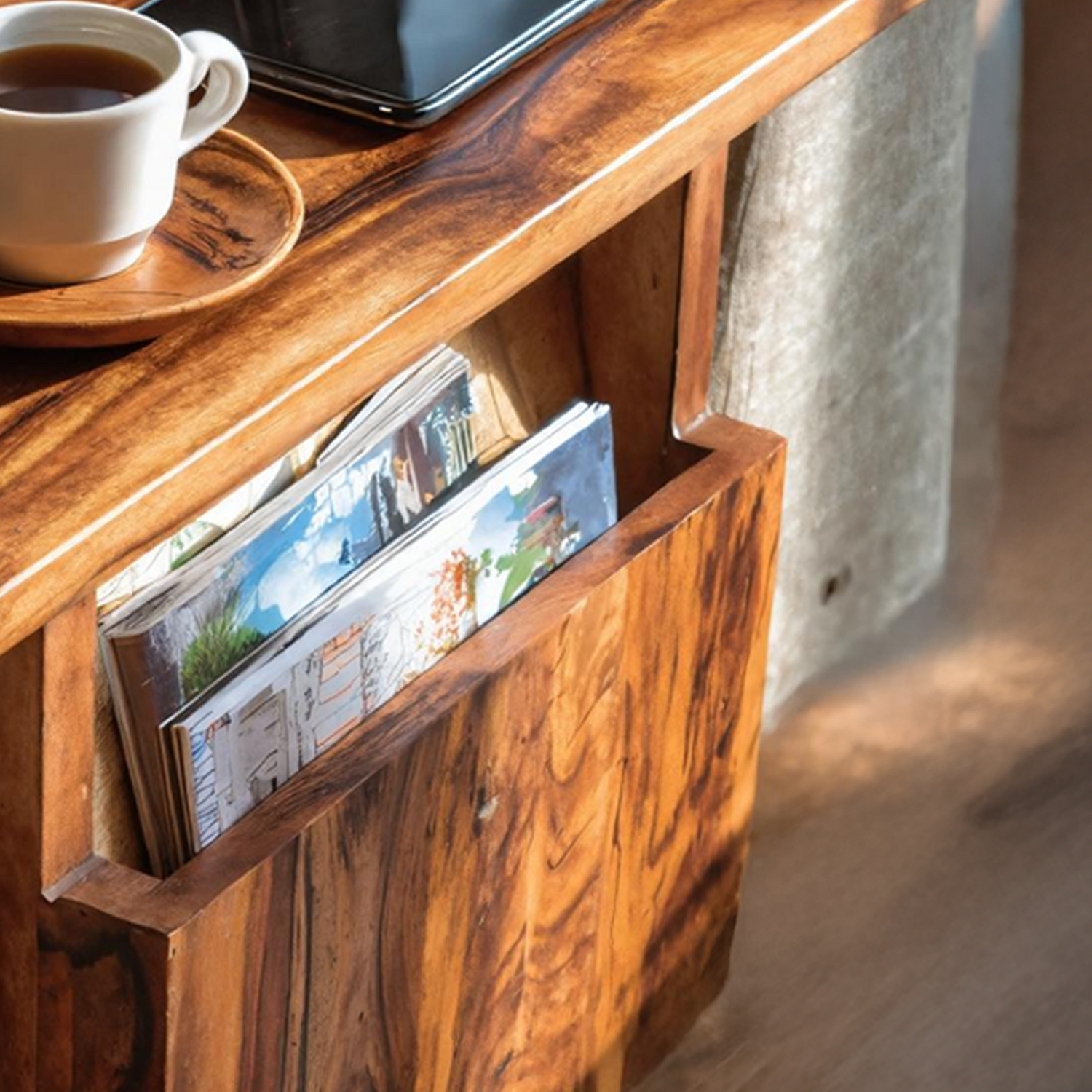 Each table is individually handmade from natural Monkeypod wood, chosen for its rich grain and sustainable qualities. The warm tones, organic textures, and variations in every slab ensure each piece is truly one of a kind.