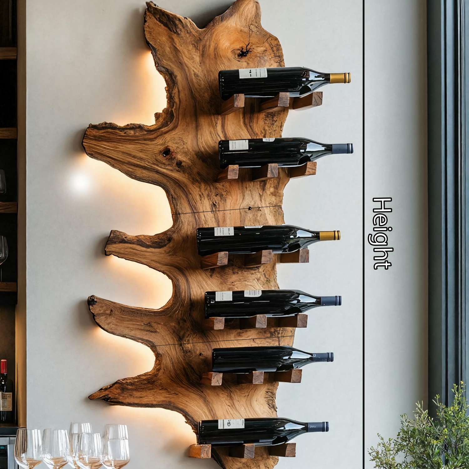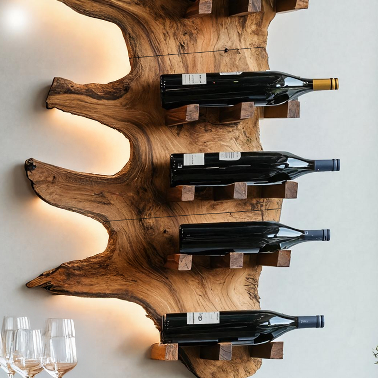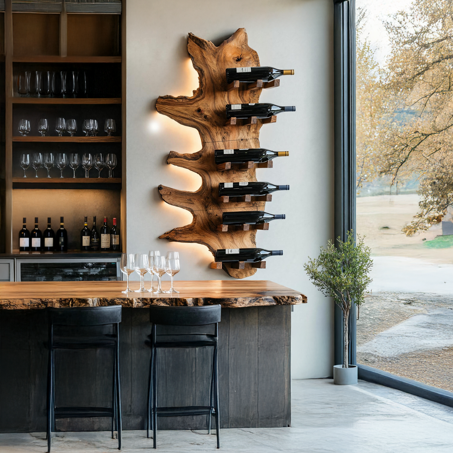 Bring a natural statement to your space with the Modern Live Edge Wine Rack For Furniture Decor And Wine Shelf. Defined by its live edge detailing, this piece pairs organic contours with the clean structure of modern design. Its warm, grounded look offers a refined way to store and display your favorite bottles, making it a subtle accent for bar areas, dining rooms, or open shelving. Blending practicality with contemporary character, it introduces a touch of nature-inspired elegance to your home décor.