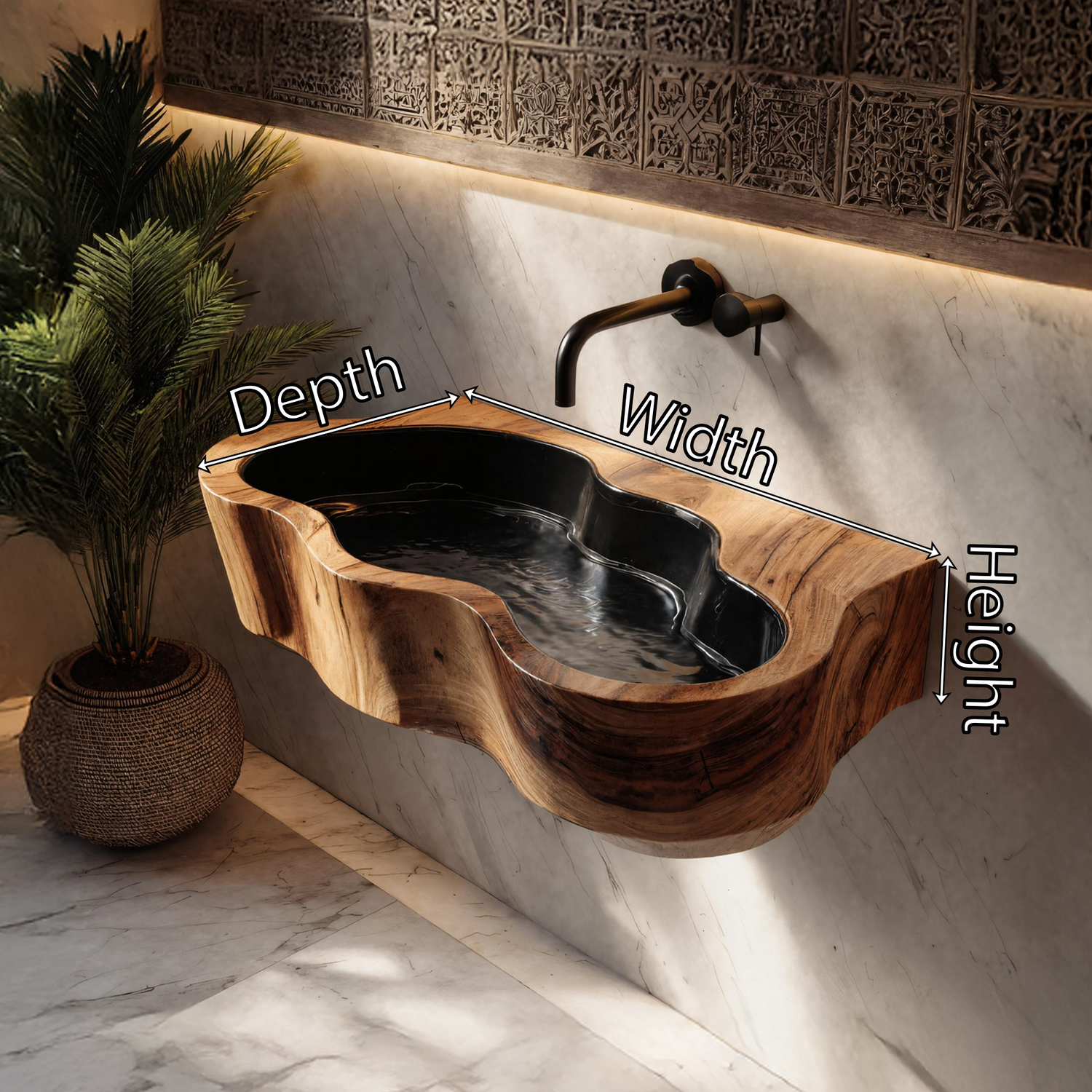 - Organic silhouette: Hand-carved and inspired by the free flow of water, ensuring no two sinks are alike.