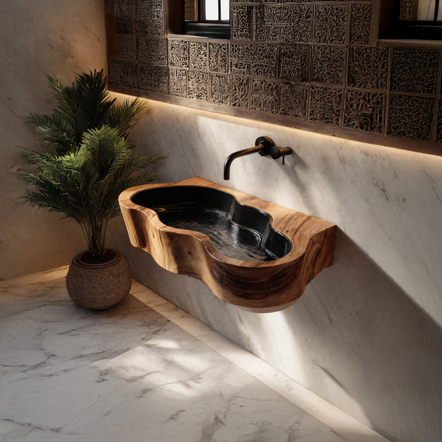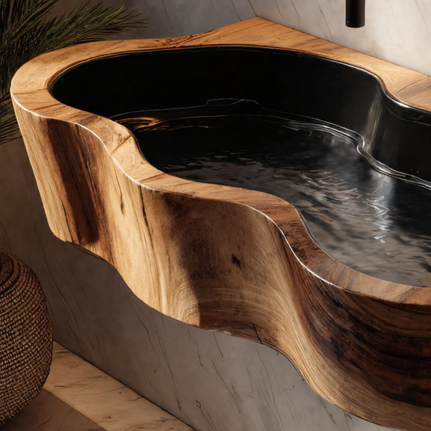 With a softly sculpted form and live-edge character, Modern Live Edge Wood Basin For Contemporary Bathroom Interior Design highlights the wood’s natural texture without overpowering the room. It suits minimalist bathrooms, stone surfaces, and modern hardware for a balanced, refined look.