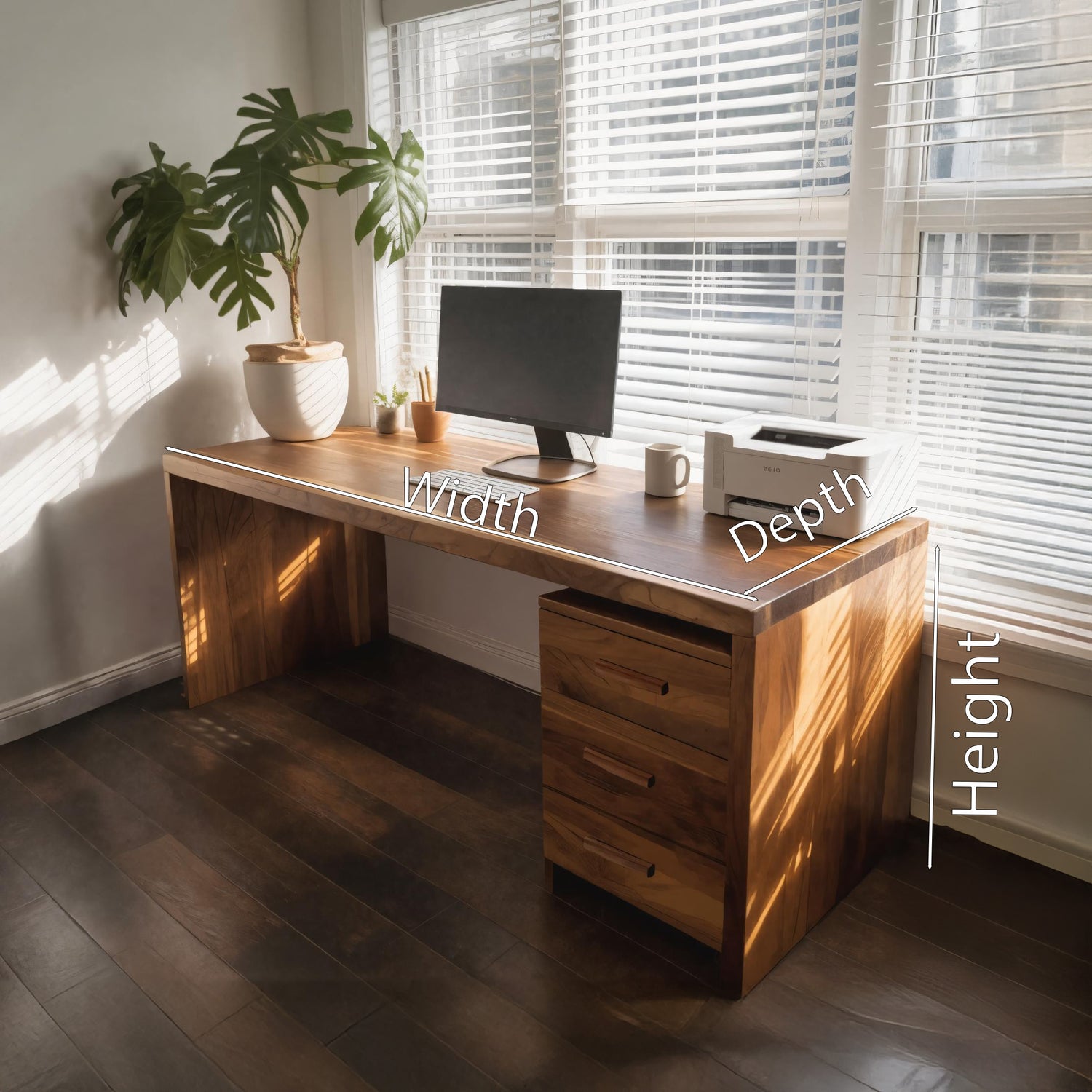 - Materials: Crafted from solid hardwood, showcasing organic wood grains, natural textures, and subtle variations — each desk is one of a kind.