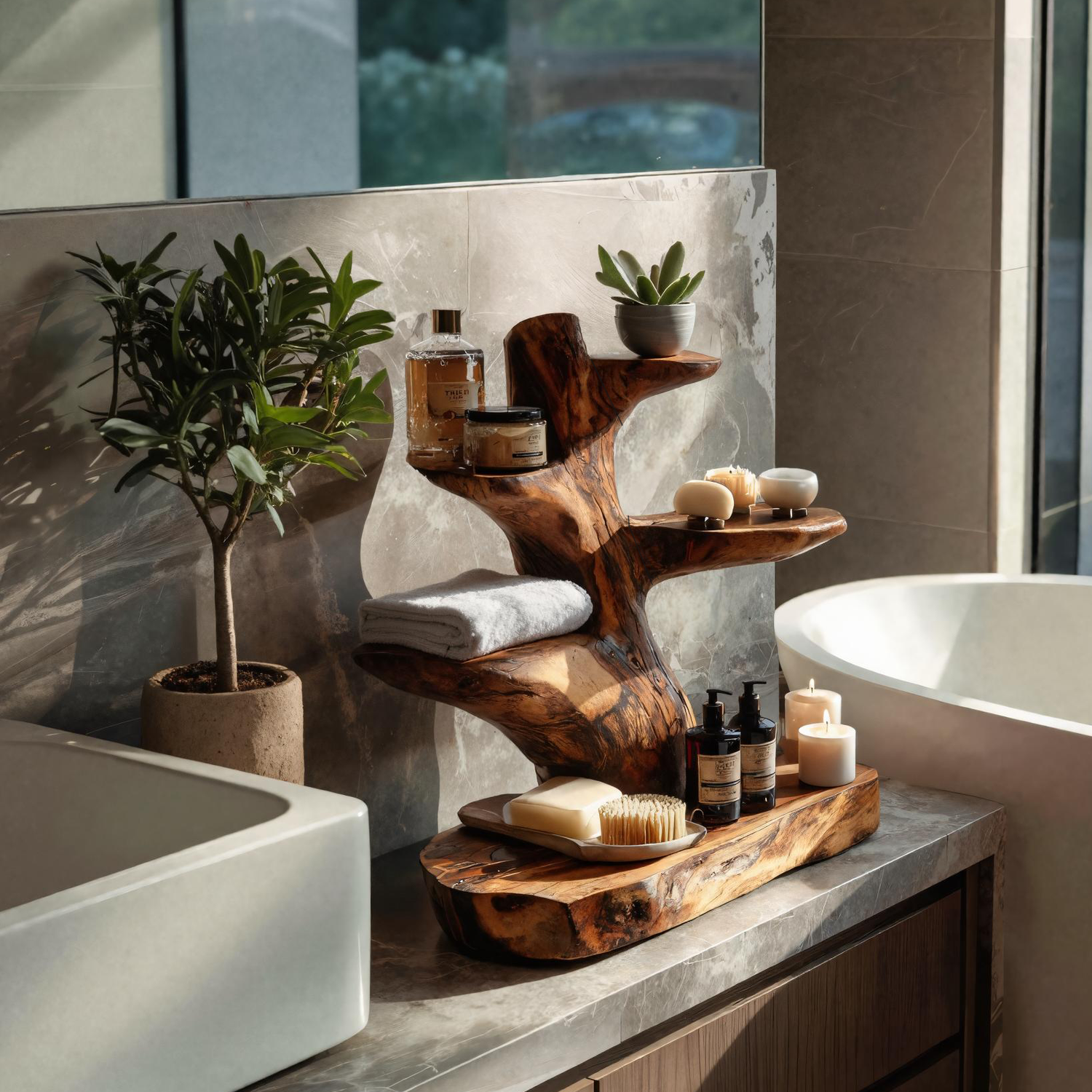 Enhance your daily routine with our Modern Organic Bathroom Shelf For Bathroom, a sculptural storage piece designed to bring warmth, character, and natural charm into your bathing space. Its flowing form and tiered structure create an inviting display for essentials while adding an artistic touch to the room.