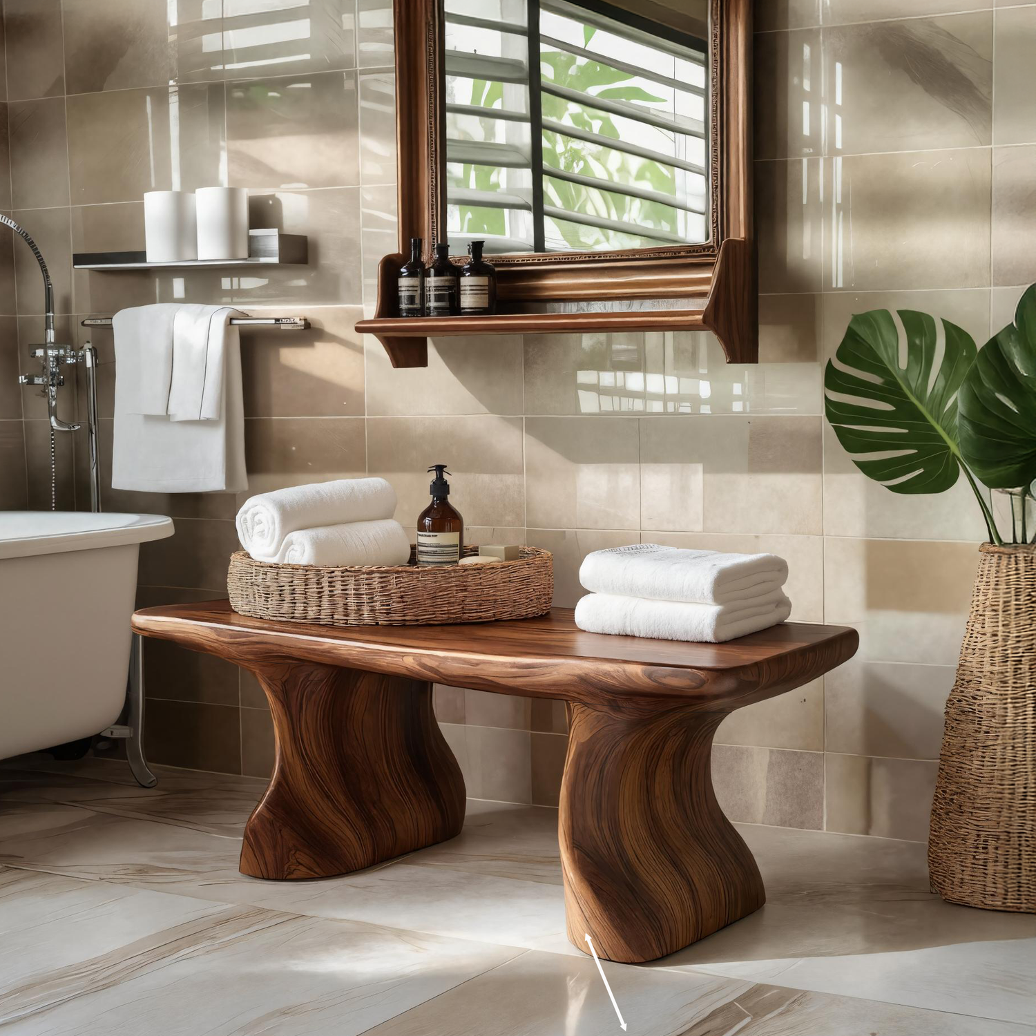 Bring natural calm and sculptural charm into your space with our Modern Organic Curved Bath Bench For Bathroom, designed to elevate relaxation-focused interiors with its warm presence and fluid silhouette. The soft curves and smooth wooden texture create an inviting atmosphere, perfect for enhancing the comfort and visual harmony of any bathroom.