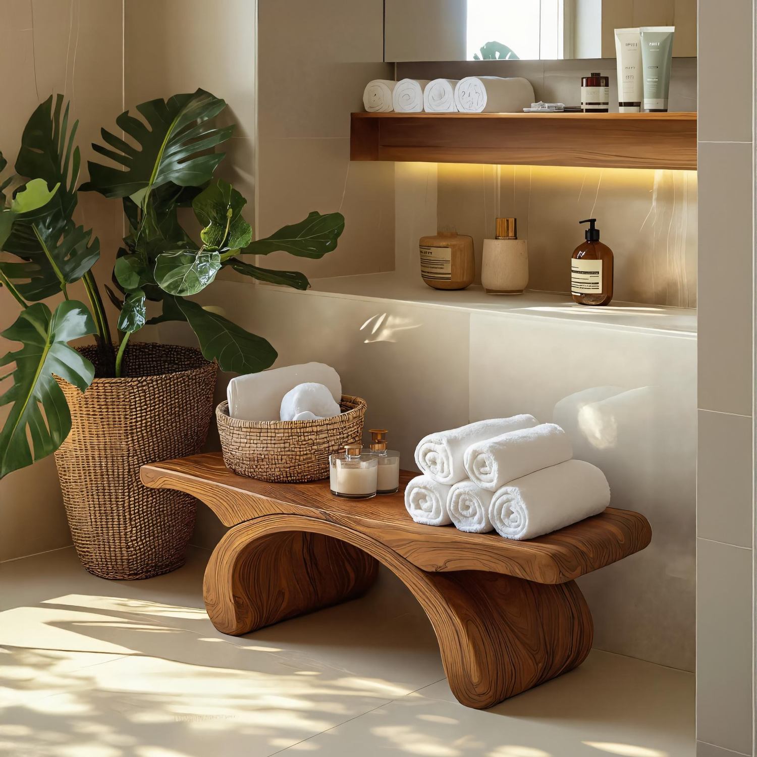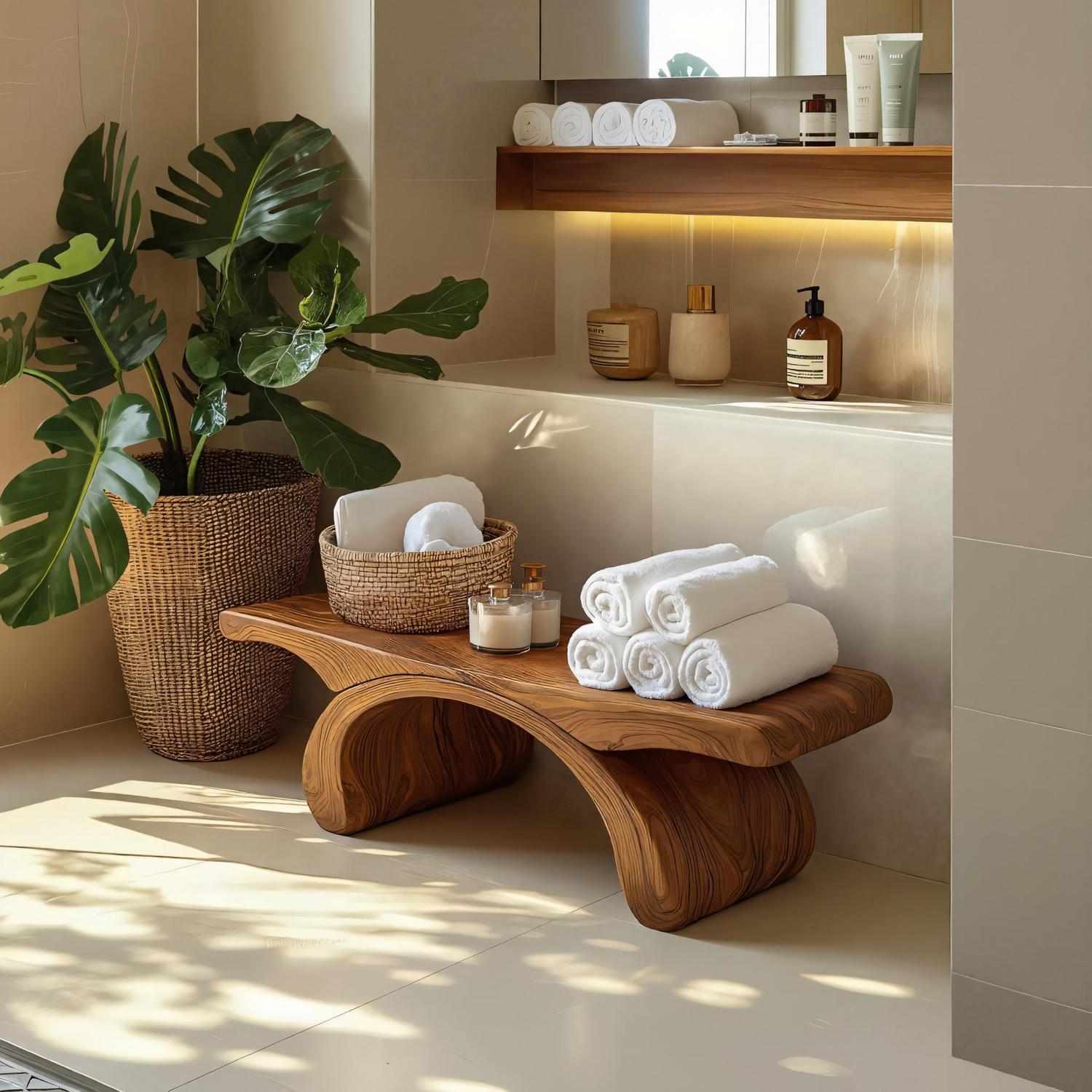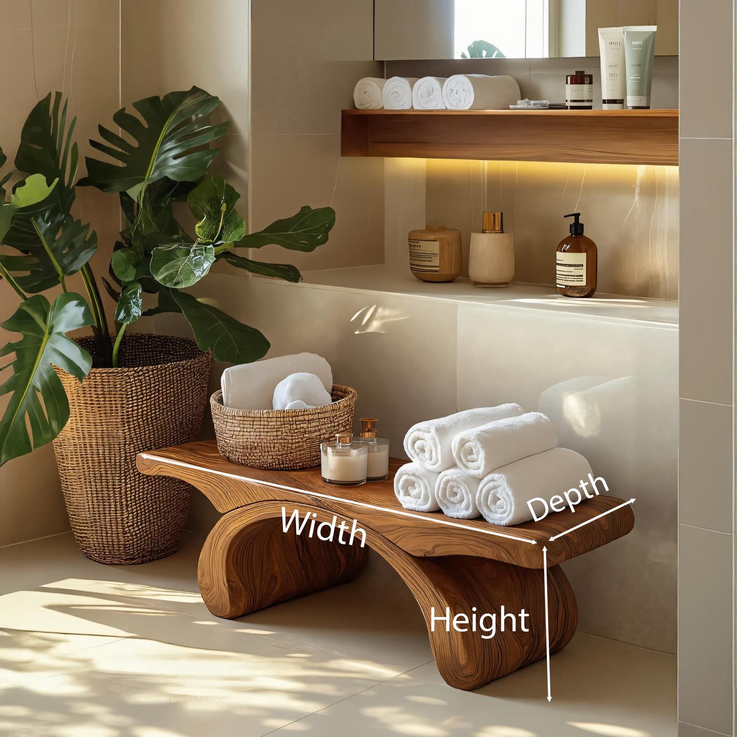 This shower bench features a gently arched silhouette crafted from solid wood, creating a balanced blend of simplicity and organic movement. The flowing form offers a comfortable seating surface while the open underside provides convenient space for towels and bath essentials. Ideal for spa-inspired bathrooms, wellness corners, or boutique retreats, it brings both function and a soothing visual harmony.