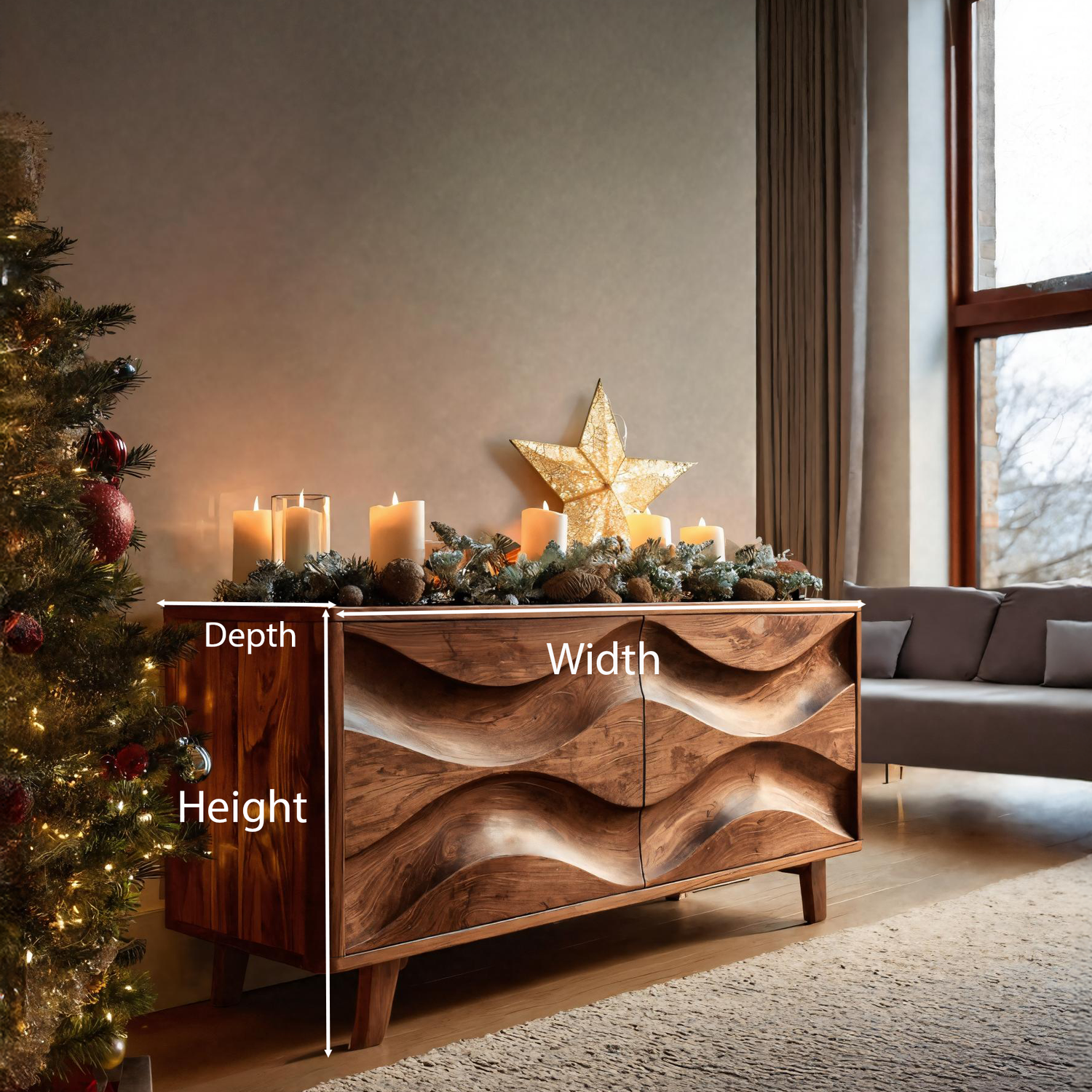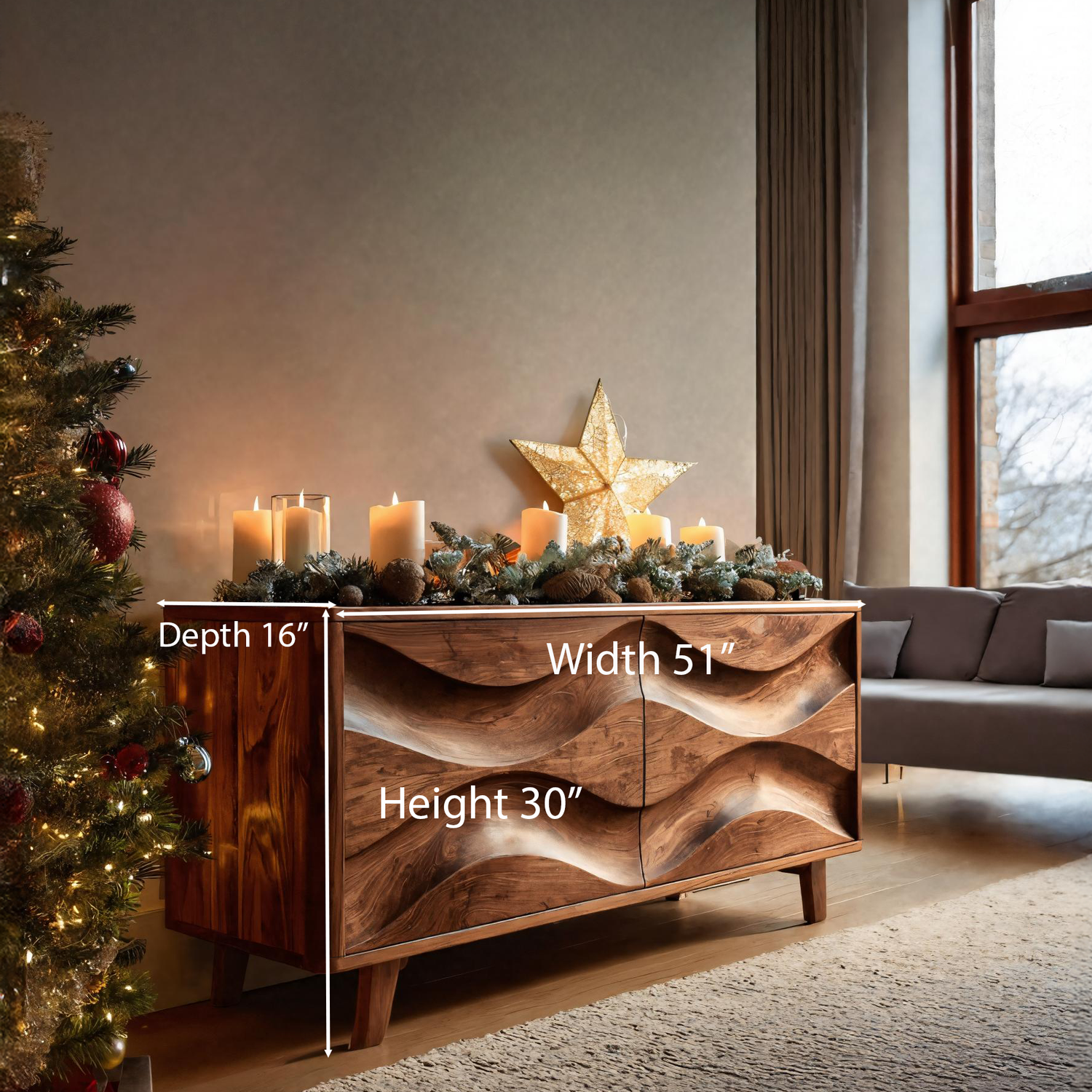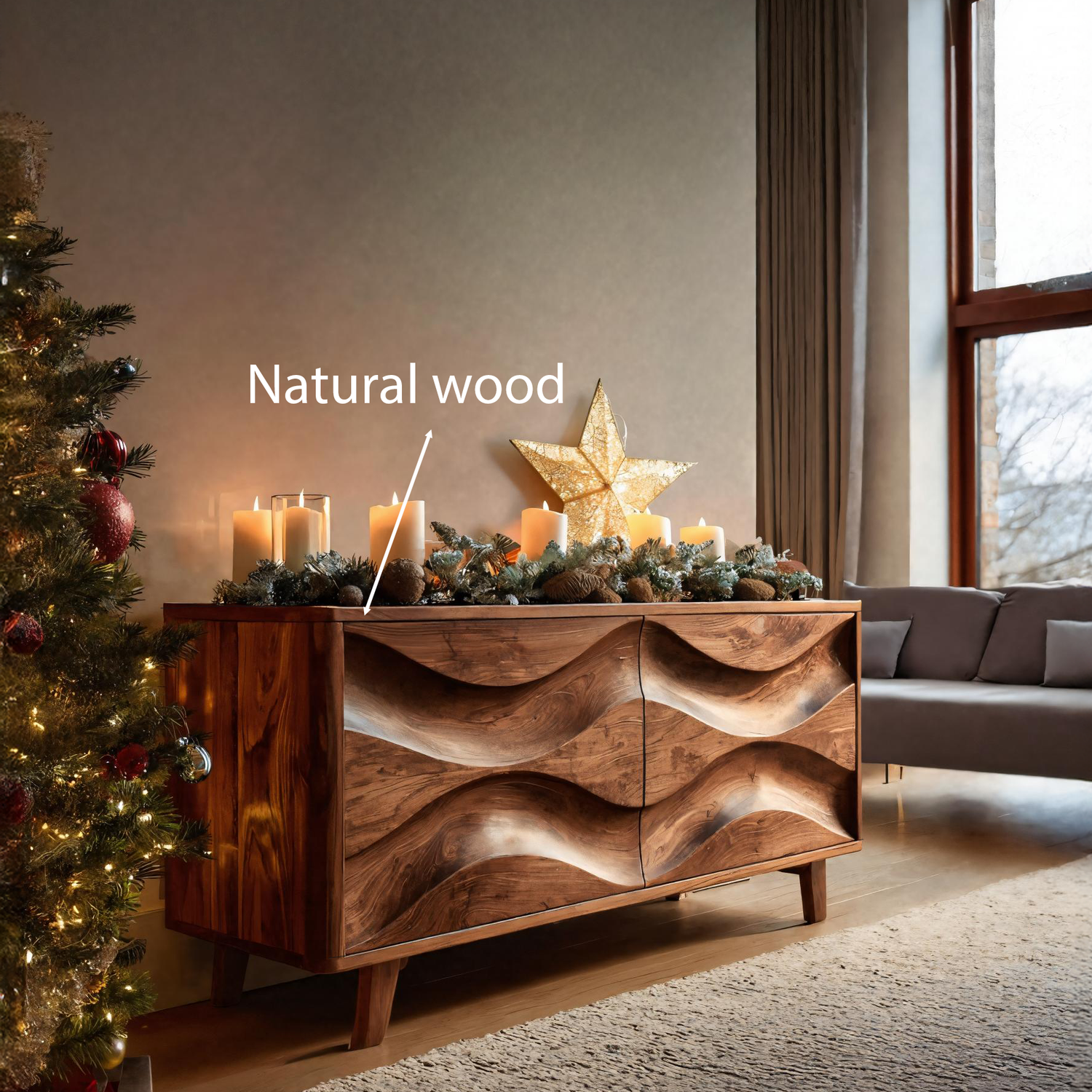 Bring sculptural elegance into your festive home with our Modern Organic Wave Pattern Sideboard For Holiday Décor, a design that blends natural artistry with functional beauty. Its flowing, carved front evokes a sense of movement and light, creating a warm, sophisticated focal point for any interior.