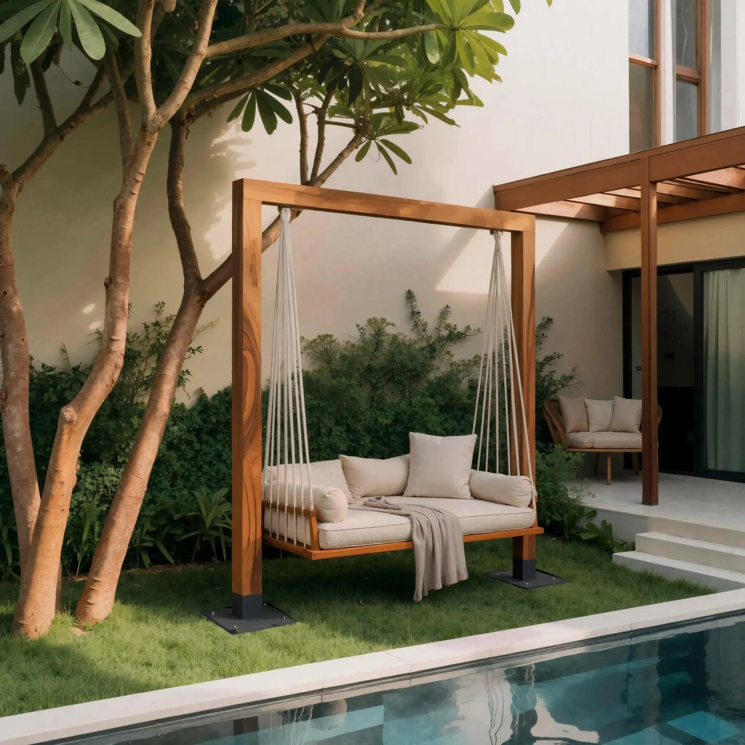 Discover the perfect blend of style and functionality with our Modern Outdoor Daybed Swing For Poolside Or Garden, designed to elegantly enhance your exterior with sculptural form and soft relaxation. This statement piece brings warmth, simplicity, and timeless character into your outdoor setting, elevating both ambiance and aesthetic.