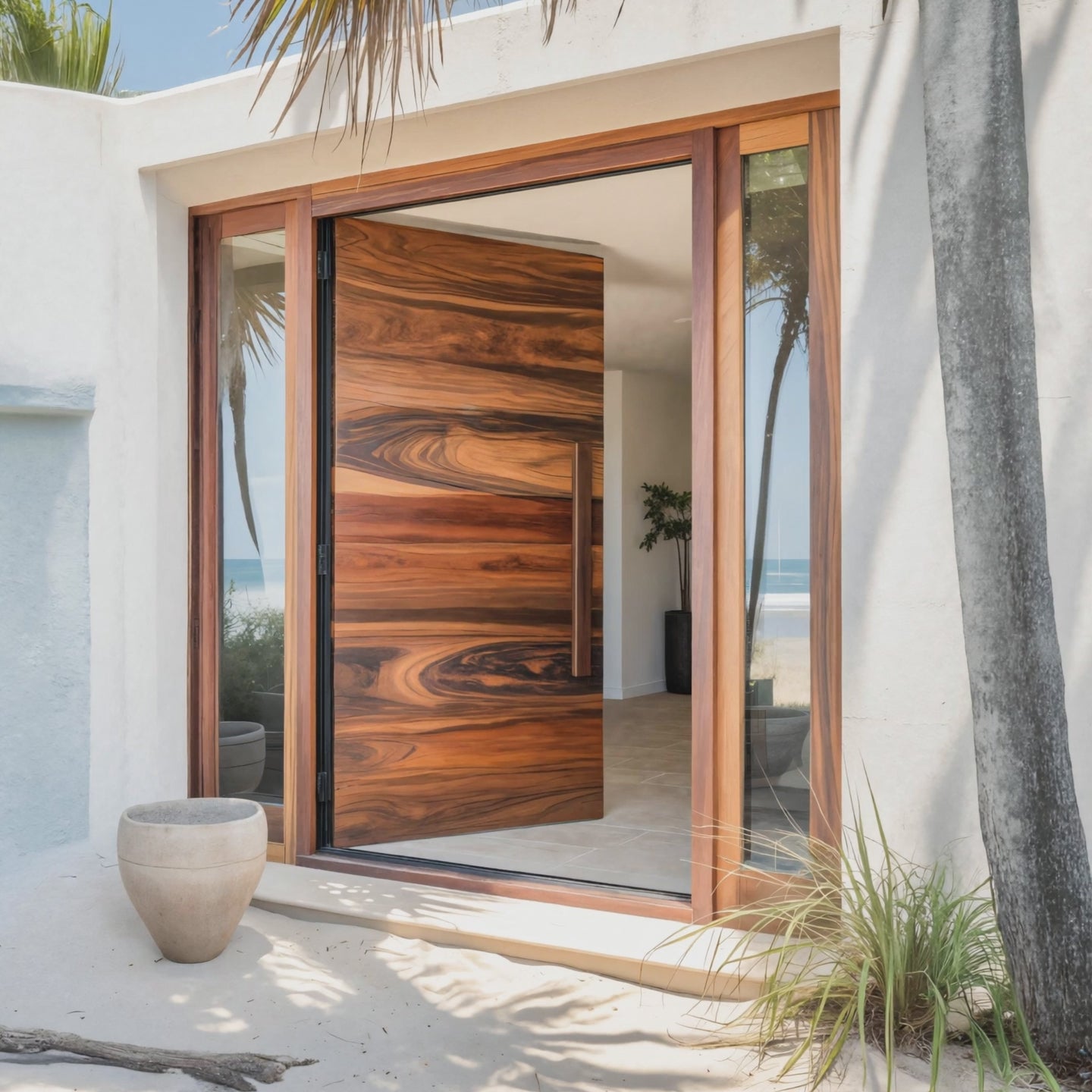 Coastal Pivot Entry Door With Grain Detail For Beach House