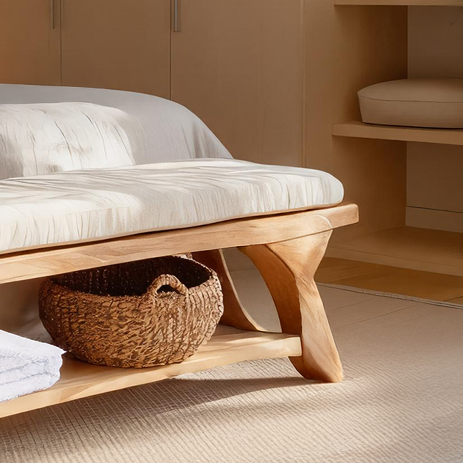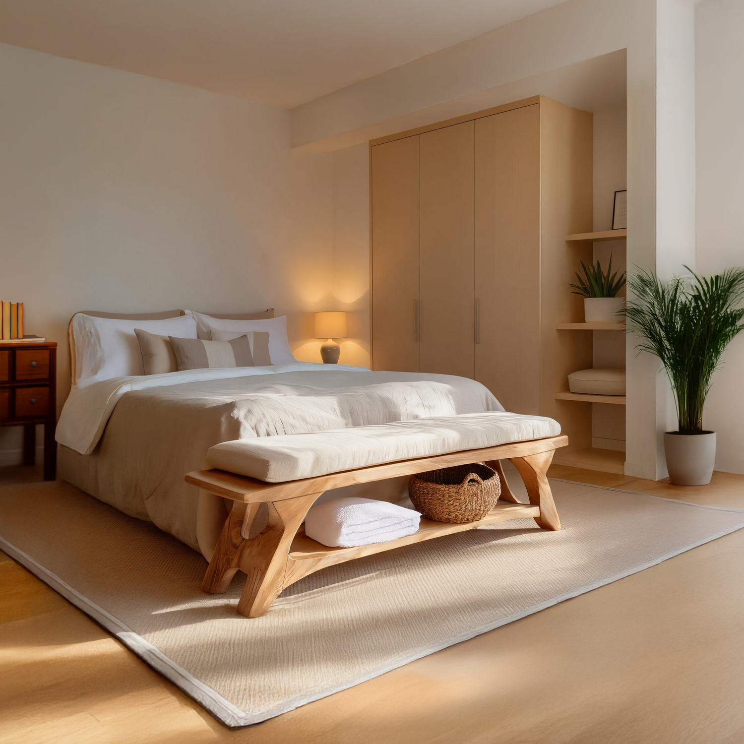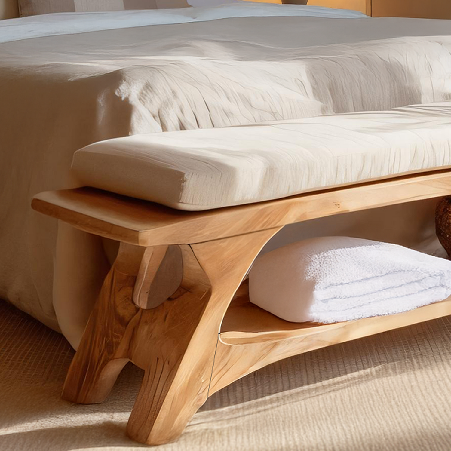 Modern Sculpted Wood Bench For Bedroom Interior Styling