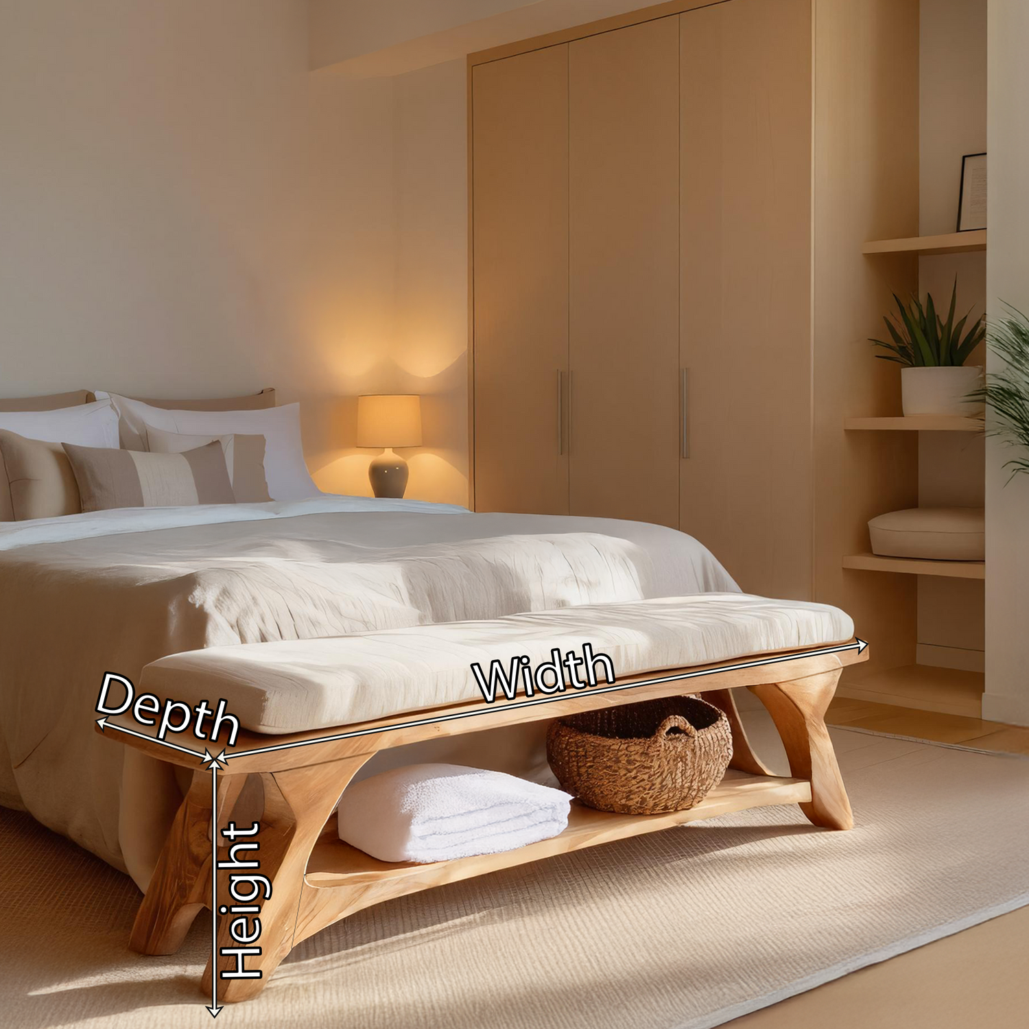 Modern Sculpted Wood Bench For Bedroom Interior Styling brings a refined, contemporary accent to thoughtfully designed bedroom spaces. Crafted from solid wood and shaped with subtle sculptural contours, this bench balances visual interest with everyday functionality. Its composed form works naturally at the foot of the bed or along a wall, adding warmth and structure while maintaining a calm, modern atmosphere.