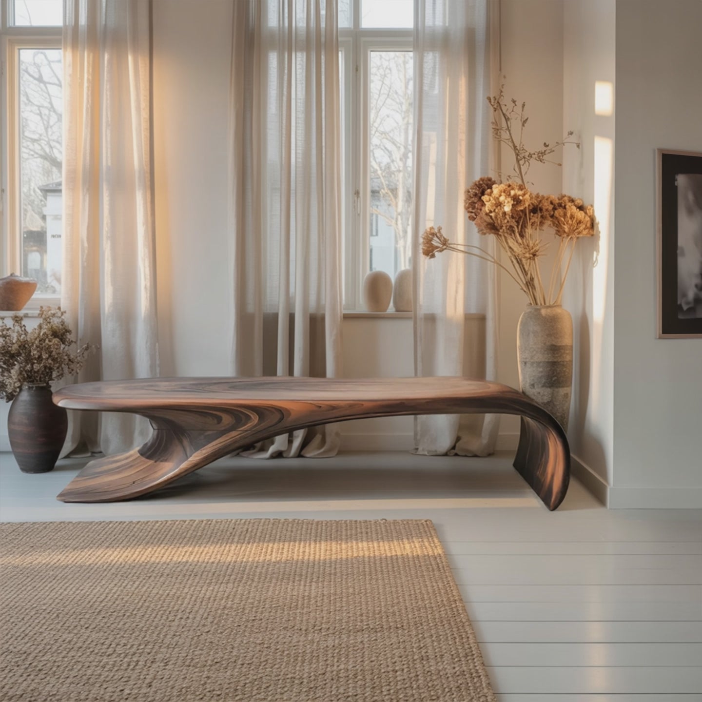 Elevate your space with our Modern Sculptural Bench With Flowing Curves For Living Room, designed as both a functional seat and a striking artistic statement. Its fluid lines and organic silhouette bring elegance and harmony into any contemporary interior.