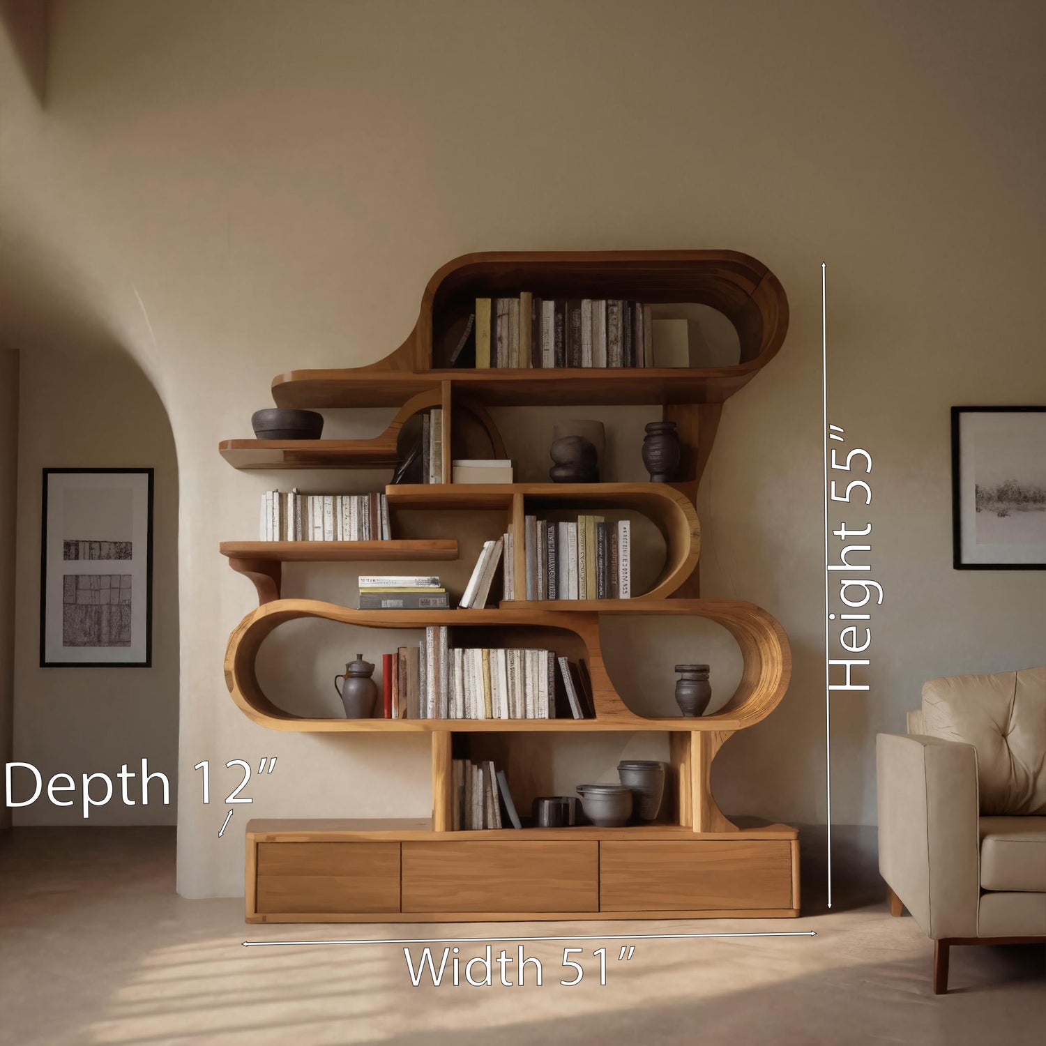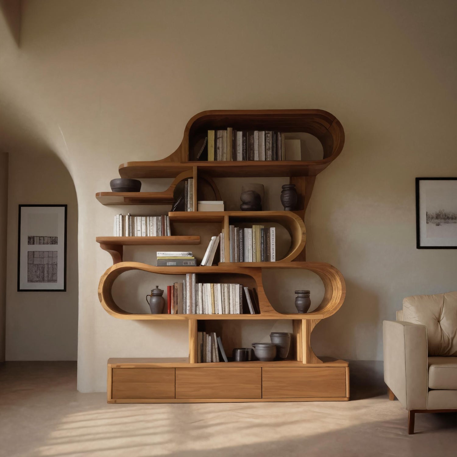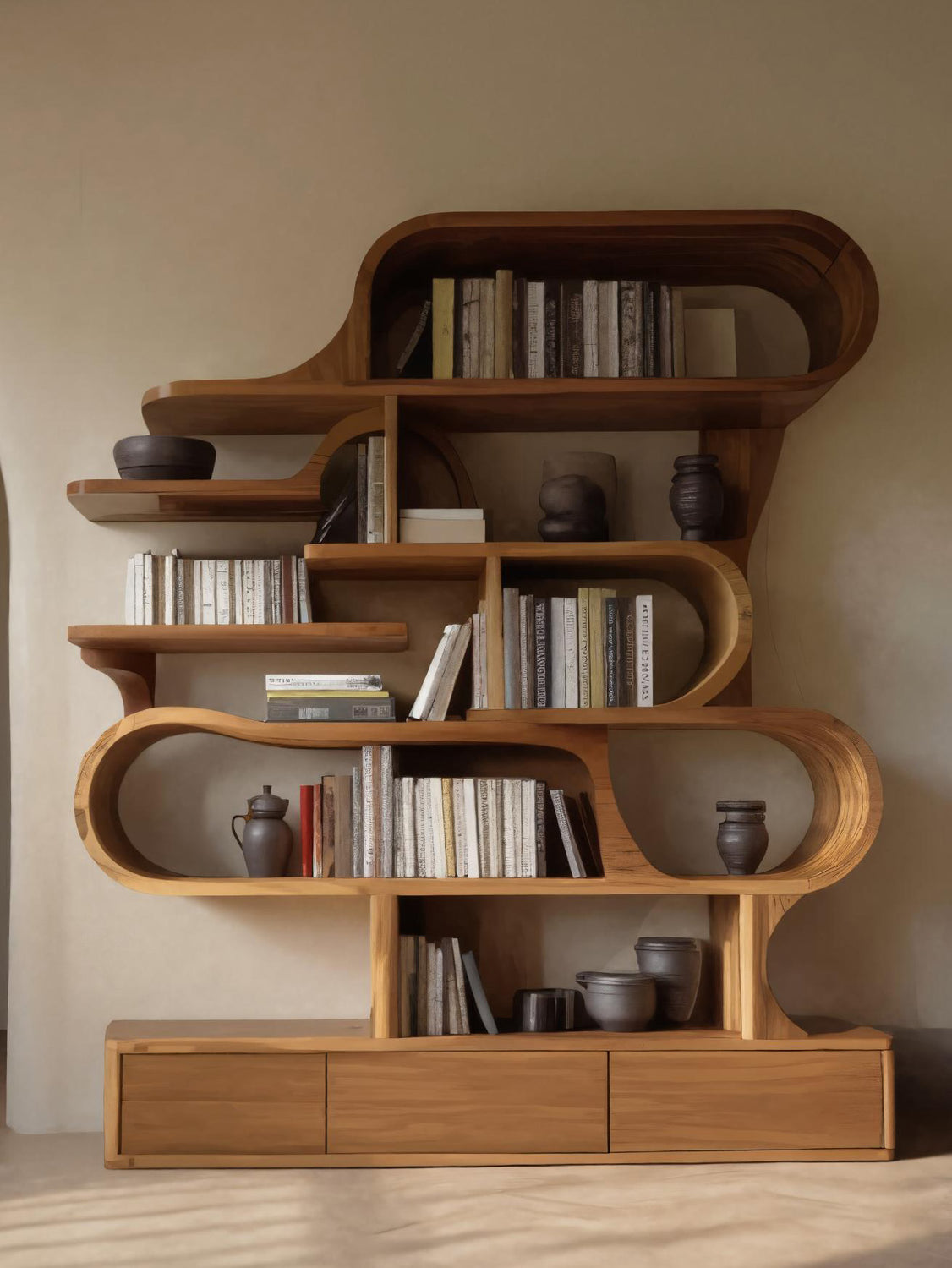 Discover the Elegance of Sculptural Design with Our Modern Sculptural Bookshelf With Curved Design For Living Room Or Office, created to bring flowing form and natural warmth into your space. This statement bookshelf enhances interiors with its organic silhouette and seamless functionality, turning storage into an artful experience.