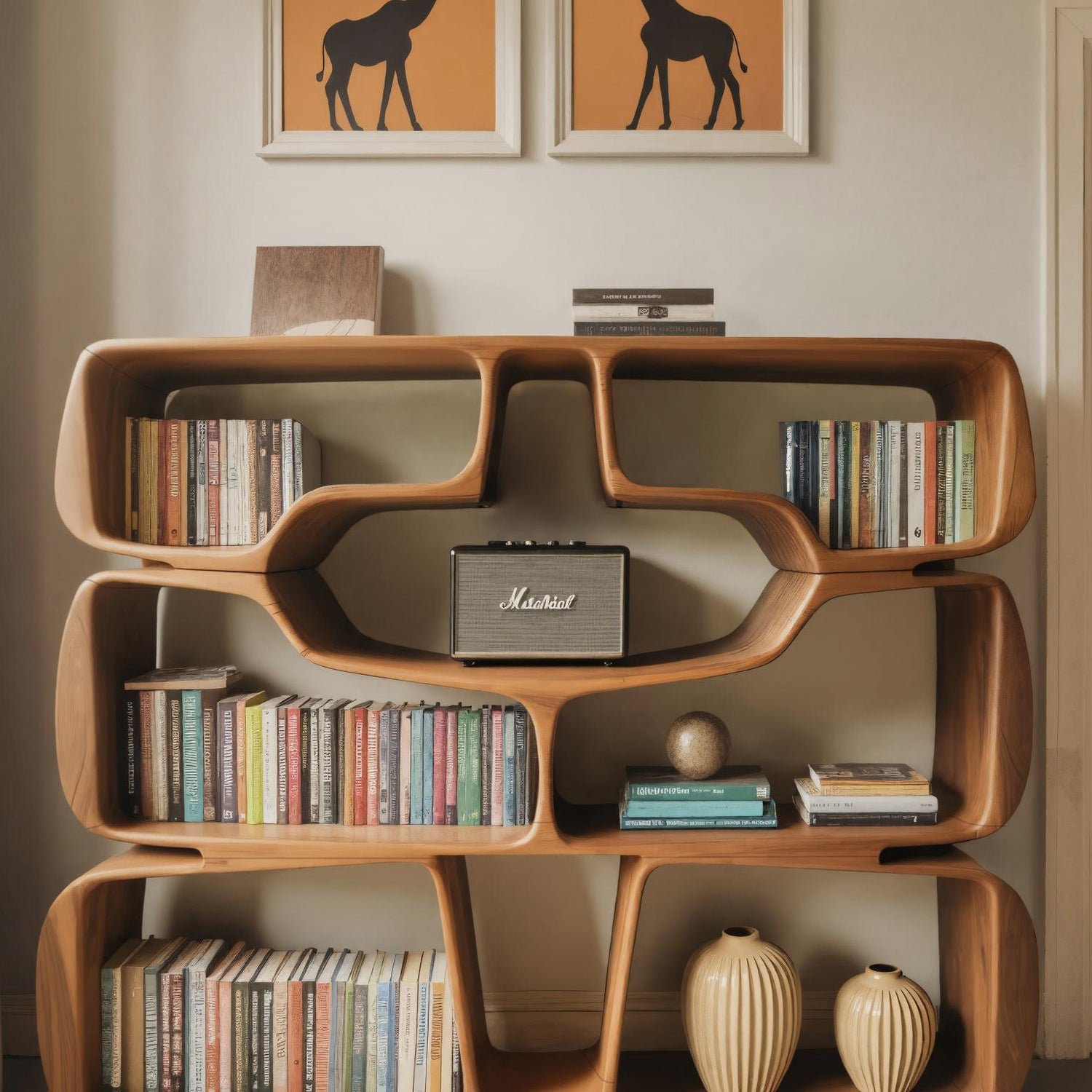 Modern Sculptural Bookshelf With Organic Curves For Living Room