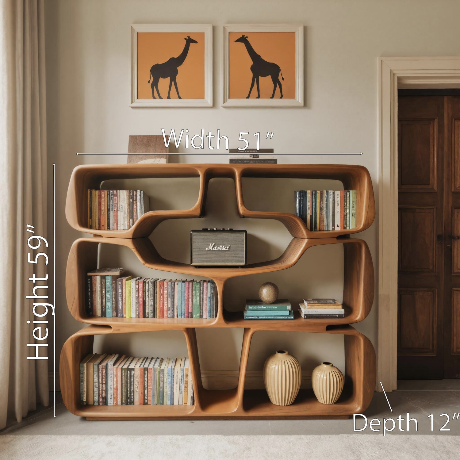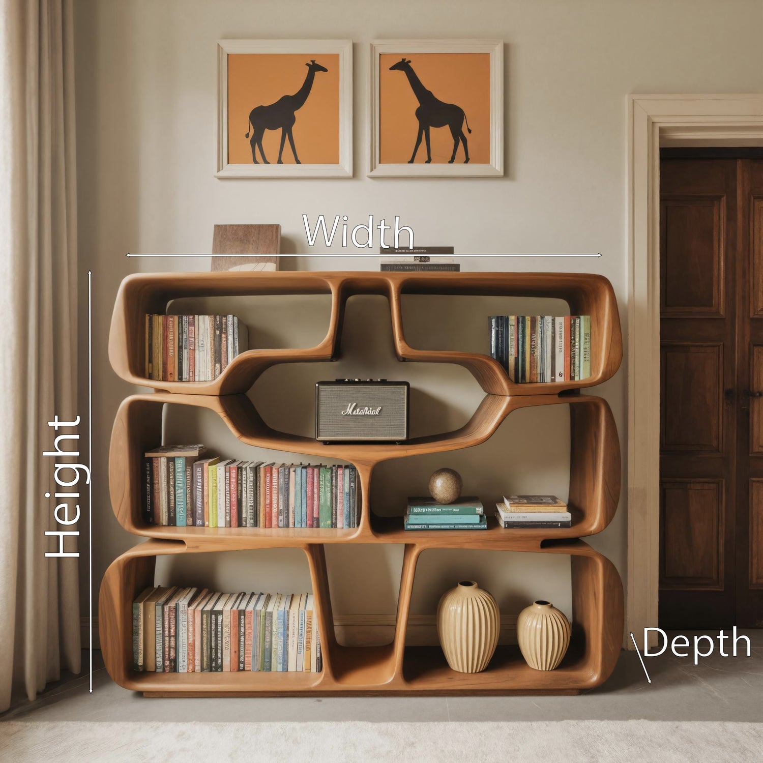 Transform your space with the Modern Sculptural Bookshelf With Organic Curves For Living Room, designed to merge functionality with an artistic presence. Featuring smooth, flowing lines and a balanced form, this bookshelf becomes both a storage solution and a sculptural centerpiece.
