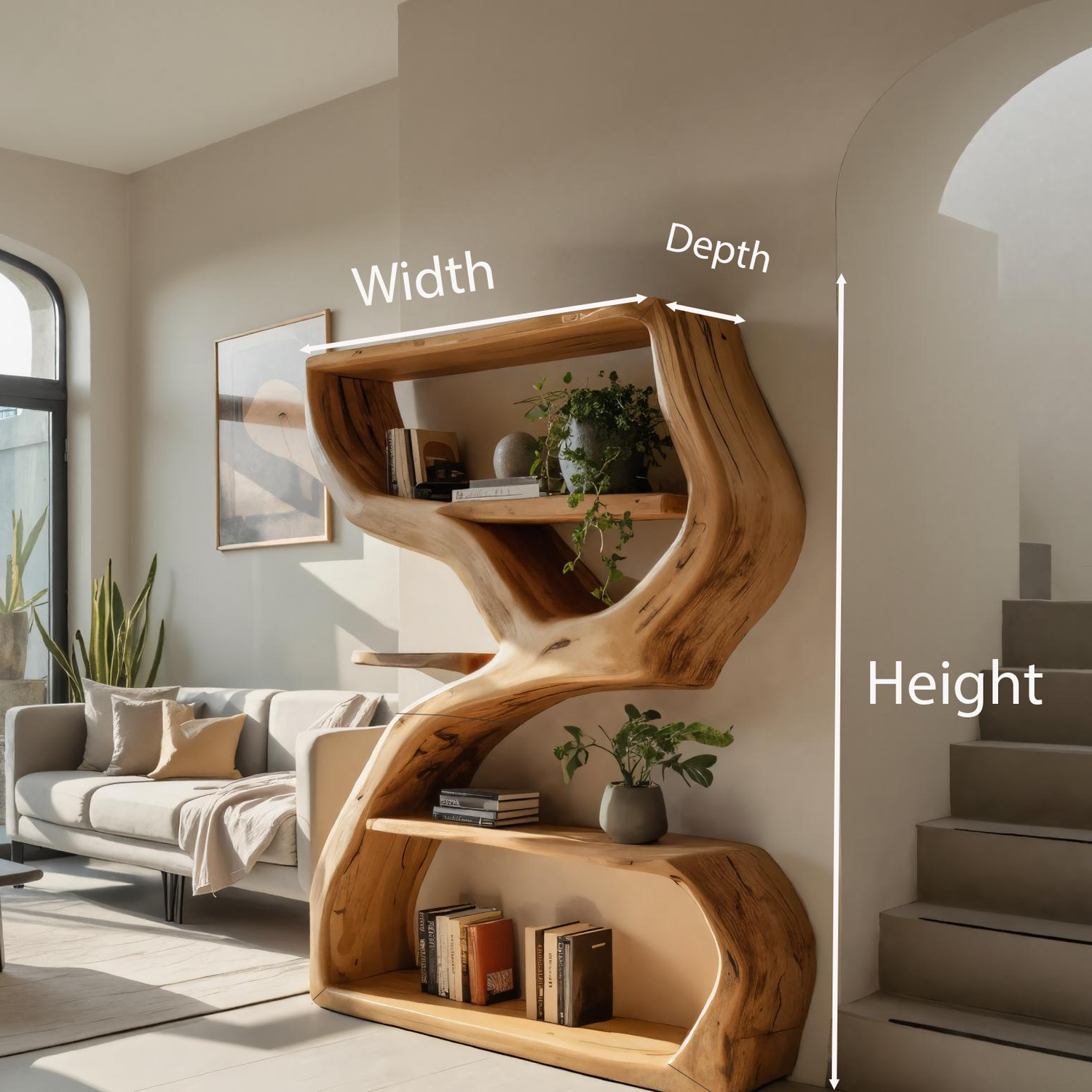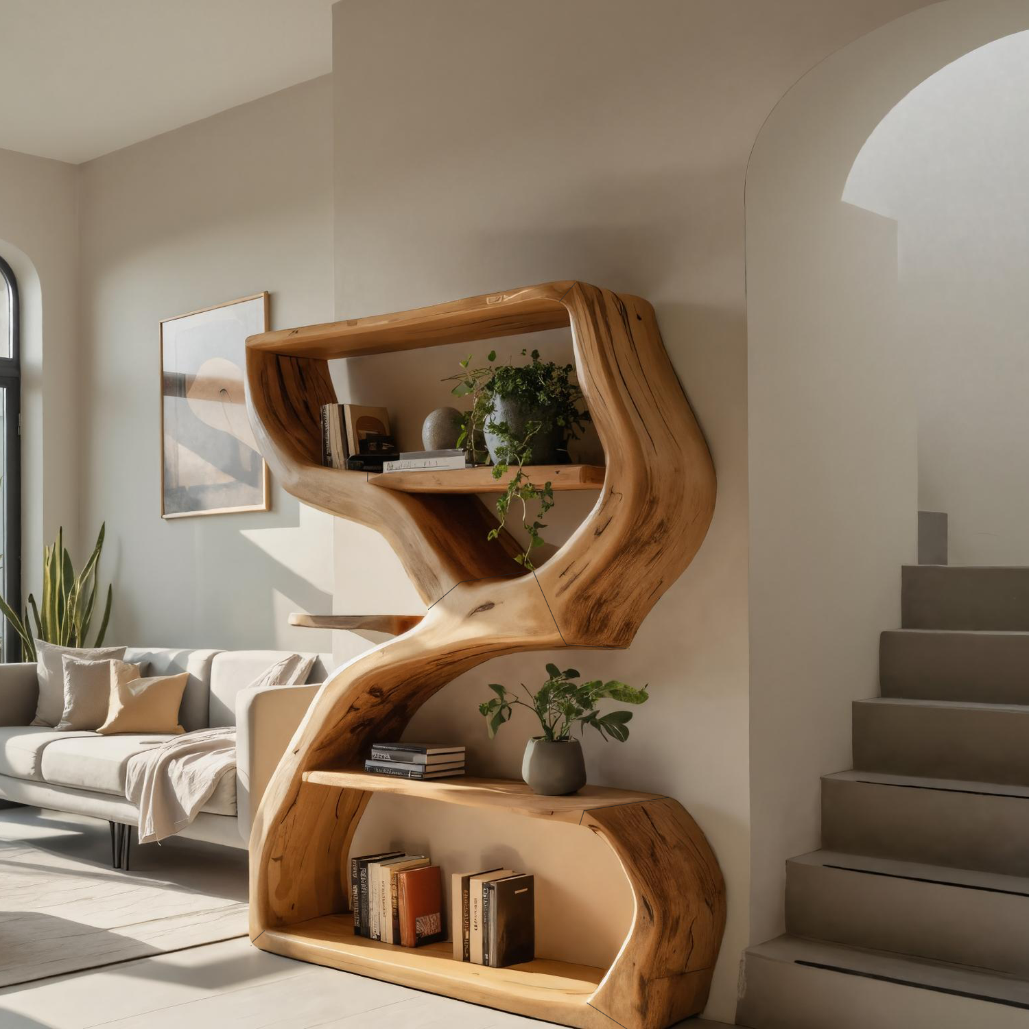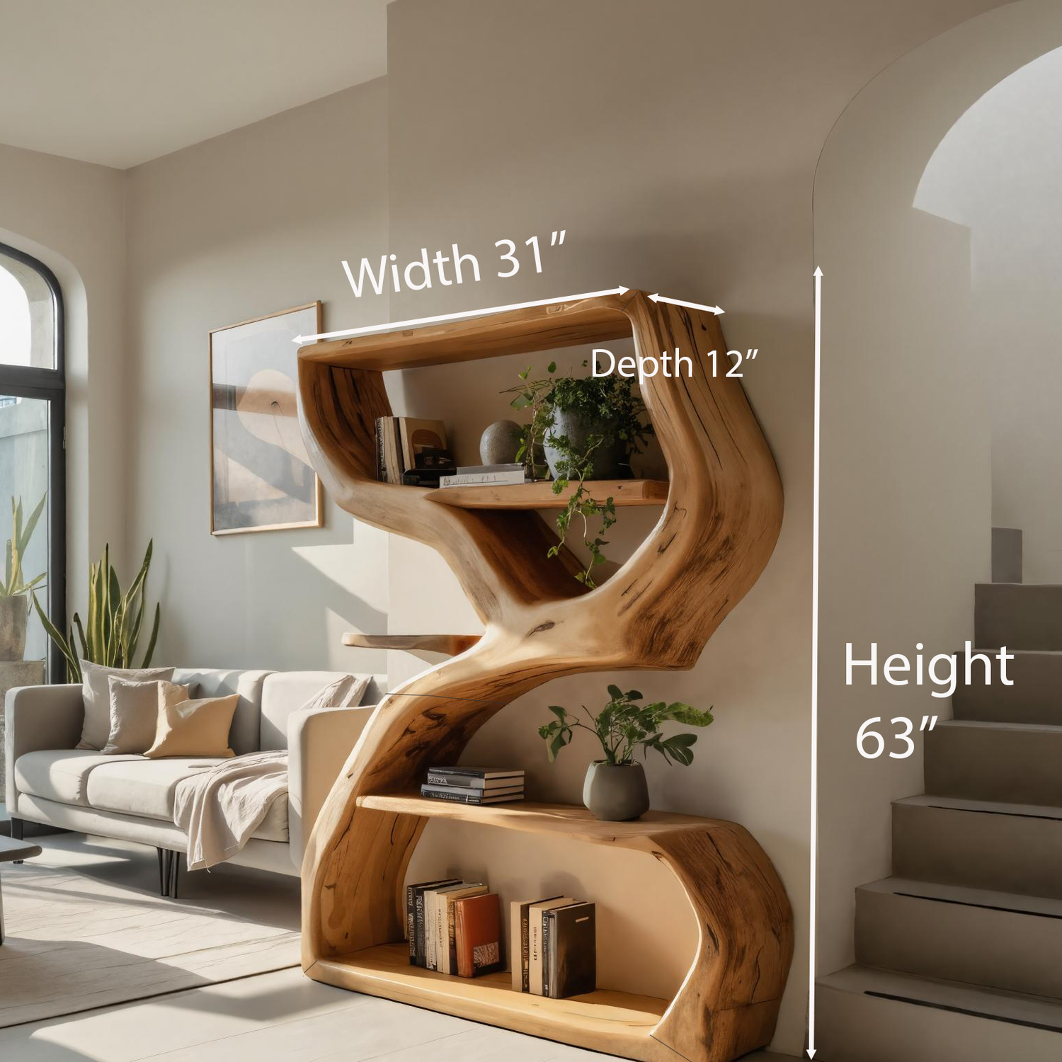 Elevate your interior with our Modern Sculptural Bookshelf With S Shaped Design For Living Room, a dynamic piece that merges artistry with everyday functionality. Its flowing silhouette adds movement to your space while providing versatile shelving for books, plants, and décor.