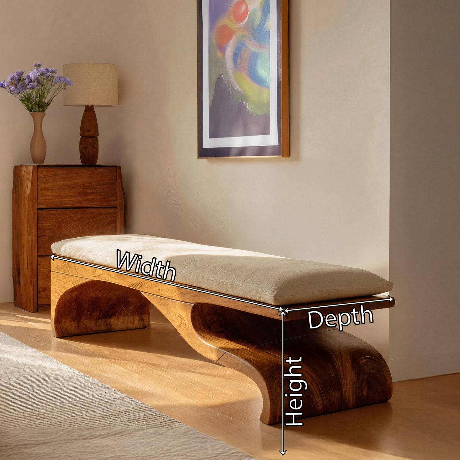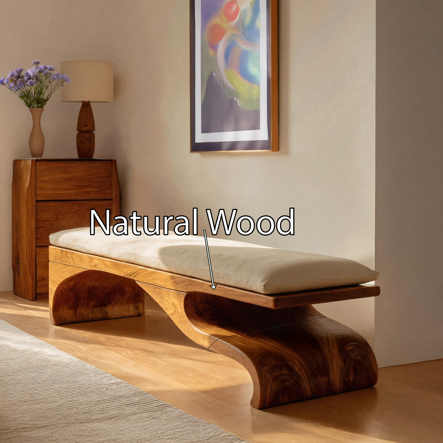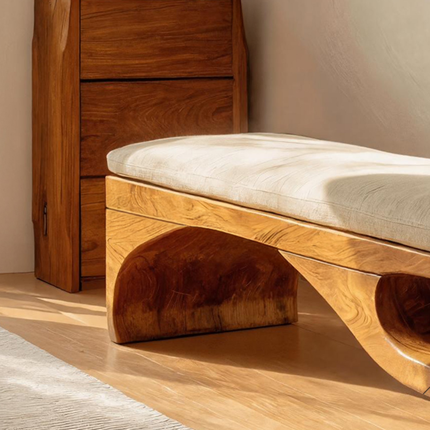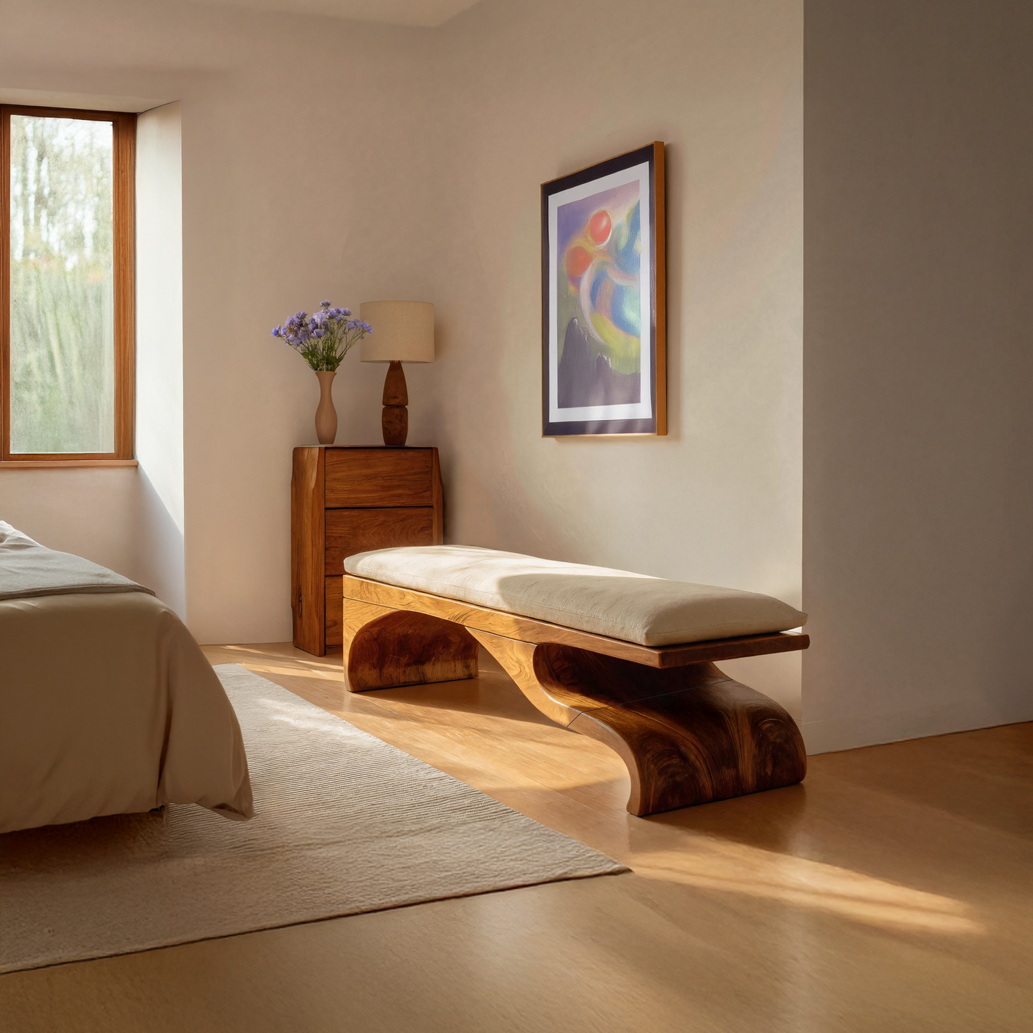 Modern Sculptural Wooden Bench For Bedroom Decor