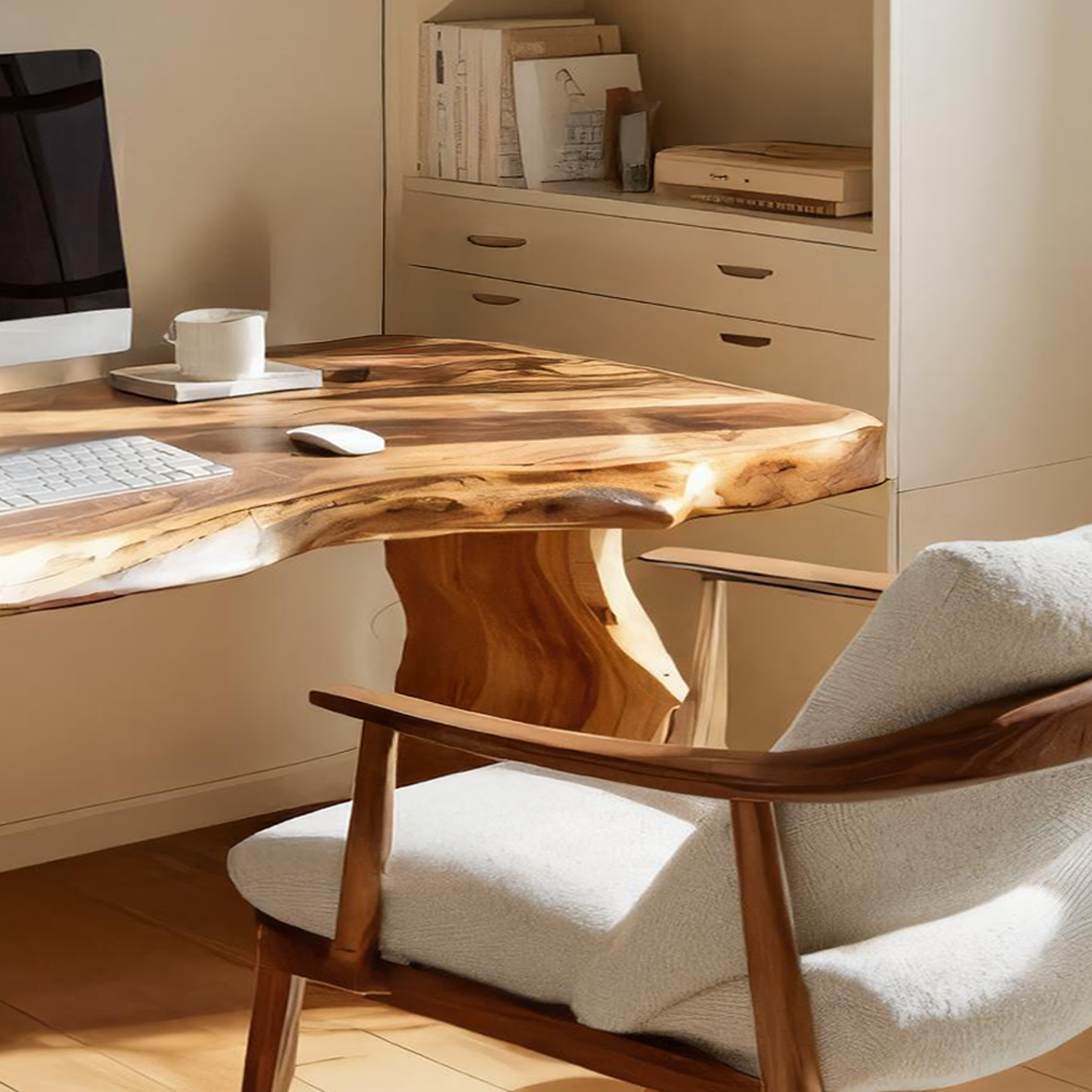 Create a calm and organized corner in your home with the Modern Solid Wood Desk For Bedroom Work And Study Space — a clean-lined, contemporary piece that pairs natural grain detail with practical surface space. Its warm, modern presence brings comfort and clarity to both work sessions and quiet study moments within the bedroom.