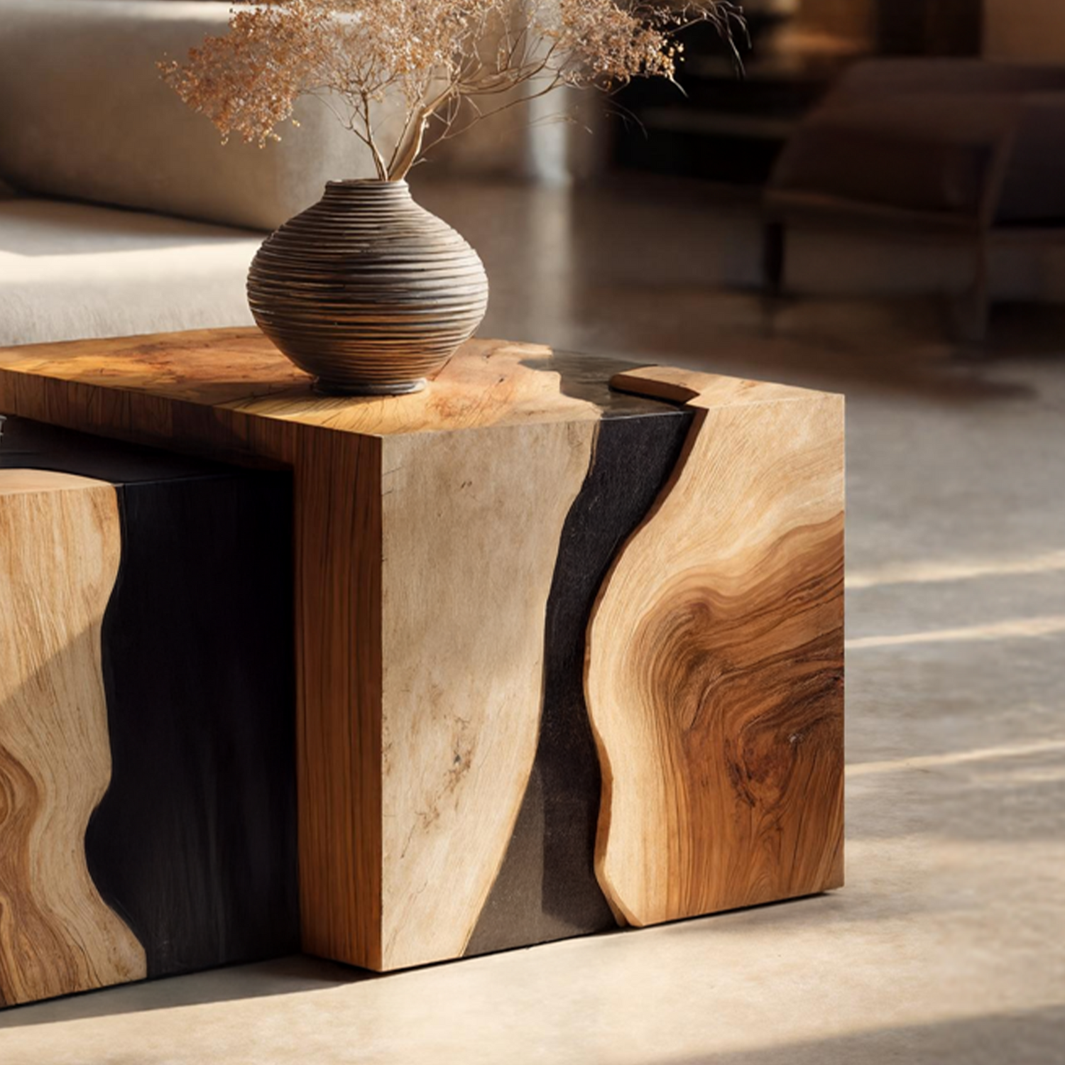 - Each table is entirely handcrafted, ensuring every piece is one-of-a-kind with its own distinctive tones, textures, and imperfections shaped by nature.