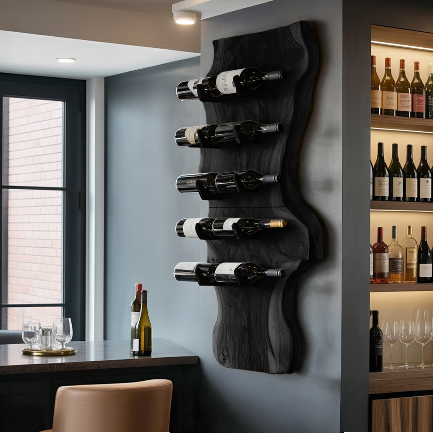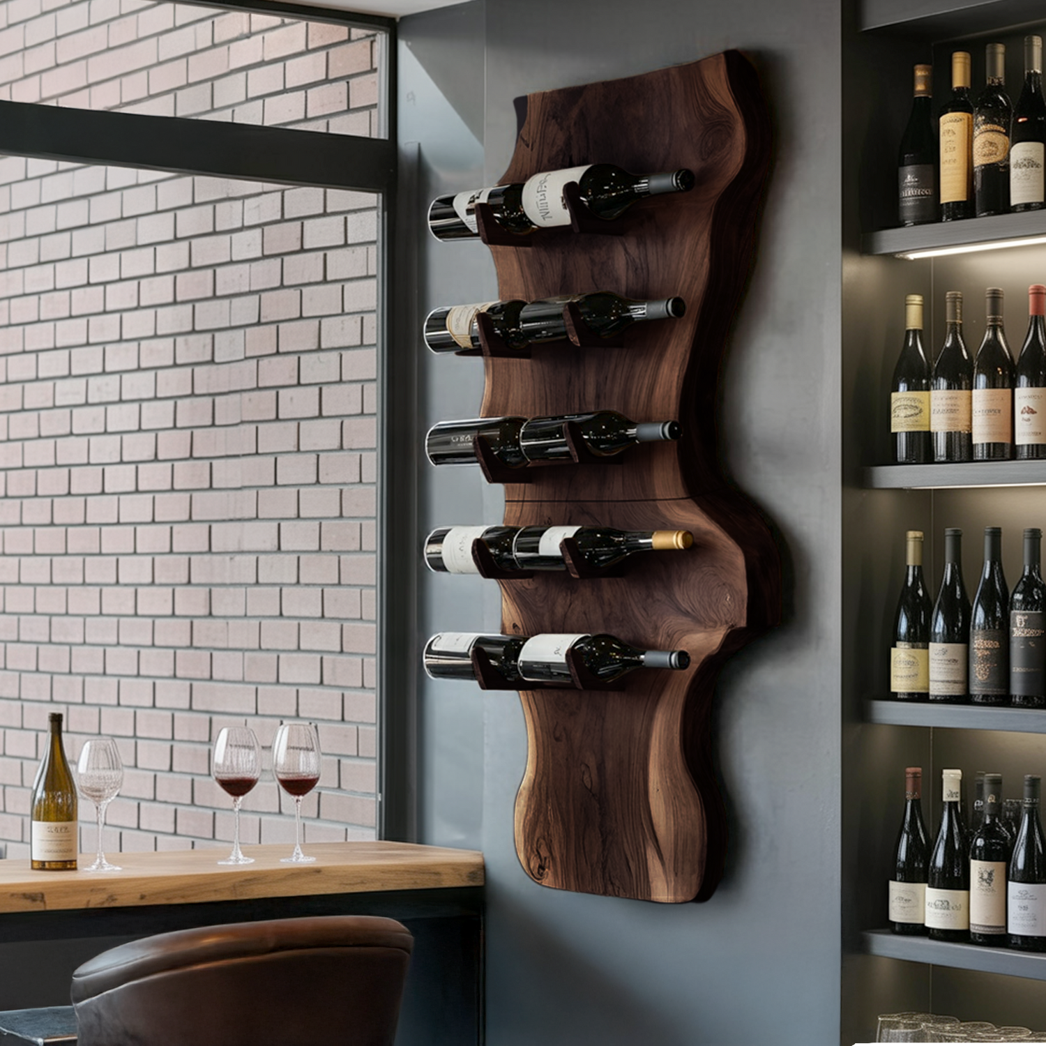 Designed as a wall-mounted wine holder, this piece combines decorative appeal with practical storage. Its stable structure securely supports a single bottle while creating a clean visual accent on your wall.