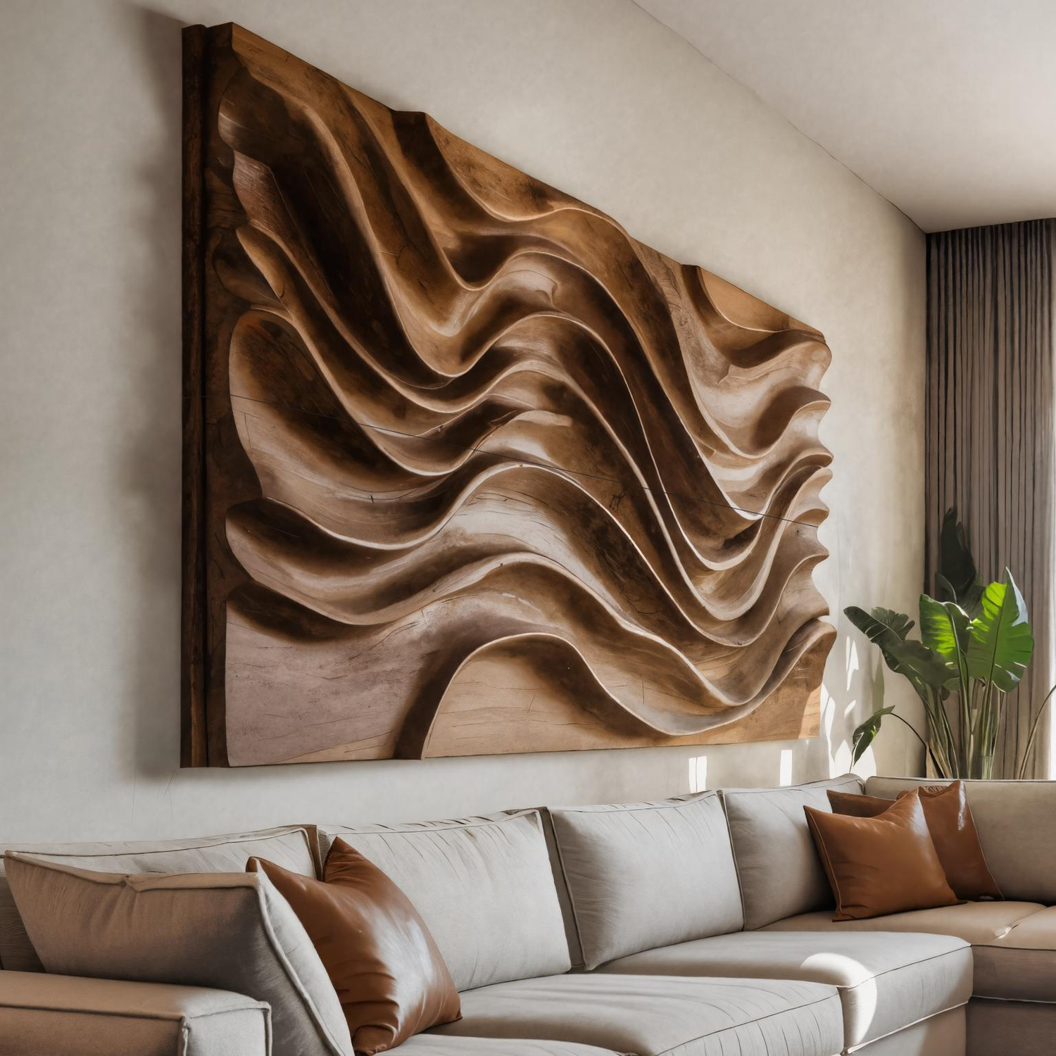 Transform your space with our Modern Wall Art Panel With Wave Design For Living Room, an eye-catching piece that merges organic artistry with contemporary elegance. Its sweeping carved lines create a fluid sense of movement, evoking the rhythm of waves and adding texture, depth, and character to your walls.
