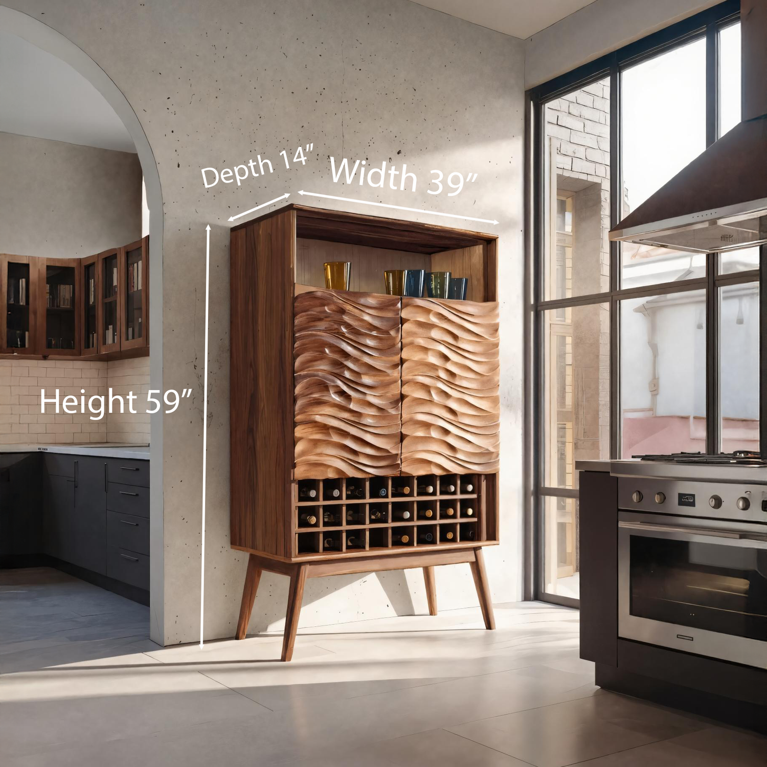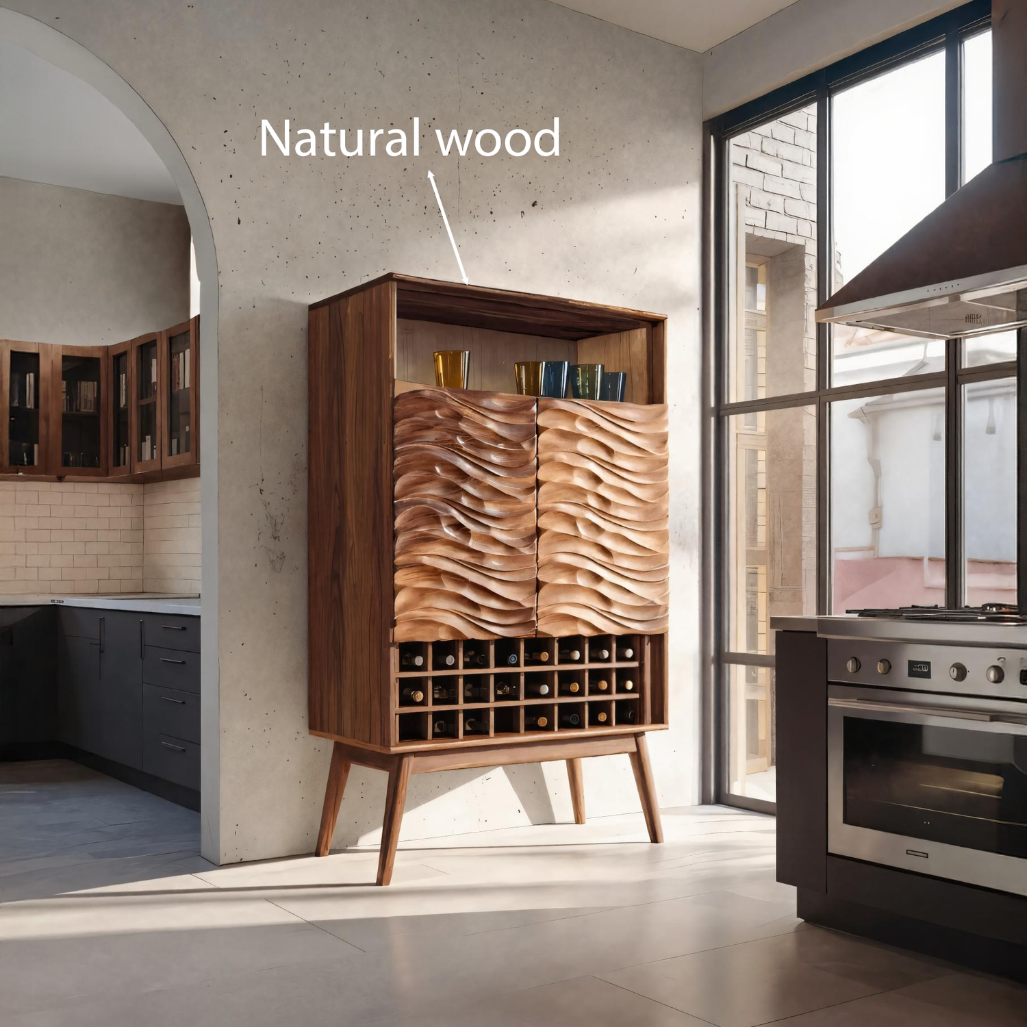 Add texture, warmth, and functional artistry to your space with the Modern Wine Cabinet With Wave Carved Doors For Kitchen. Designed to blend elegance with practicality, this cabinet features fluid hand-carved details that mimic the gentle motion of waves—turning a simple storage unit into a captivating sculptural statement.