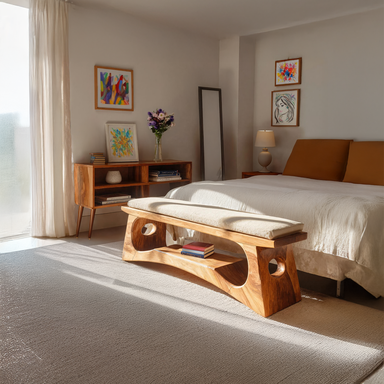 Modern Wooden Bench For Natural Bedroom Decor adds a calm, contemporary touch to bedrooms styled with natural materials. Crafted from solid wood and defined by clean lines and balanced proportions, this bench offers functional seating while keeping a light, uncluttered presence. Its modern form fits seamlessly at the foot of the bed, along a wall, or within softly layered interiors that emphasize warmth and simplicity.