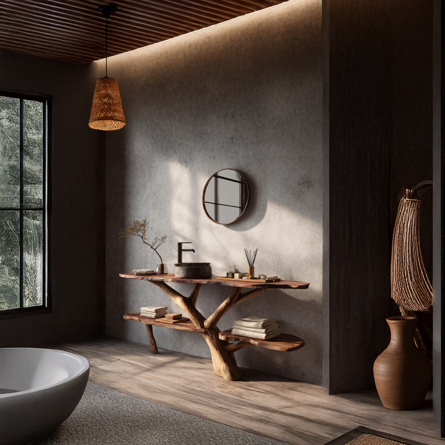 Modern Wooden Live Edge Bathroom Vanity For Minimalist Bathroom Design