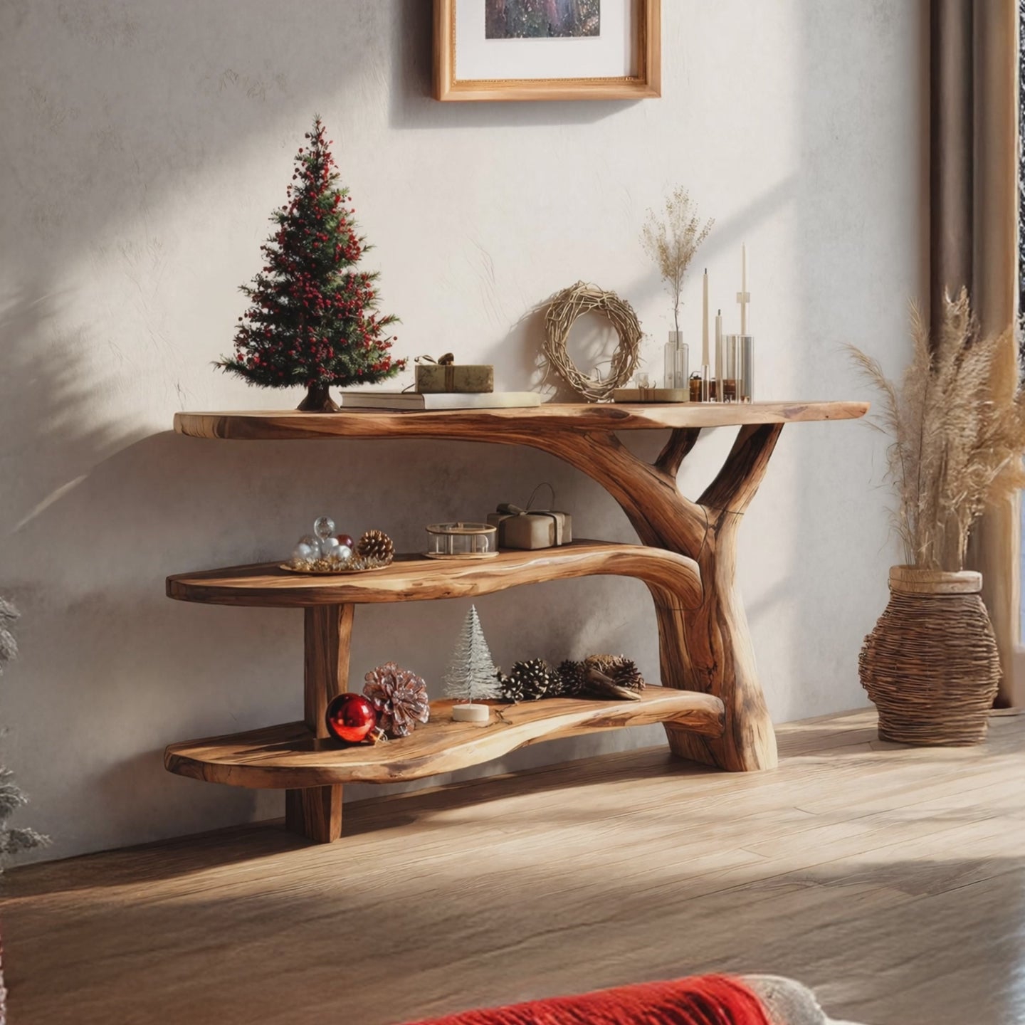 Add a touch of contemporary elegance to your home with the Modern Wooden Live Edge Console Table For Holiday Living Room Xmas Accent. Handcrafted from premium solid wood, this table features a sleek modern silhouette combined with the organic charm of a live-edge design. Its smooth finish and natural grain make it perfect for showcasing Christmas decorations, candles, or festive accents. Ideal for living rooms or entryways, it blends functionality with timeless beauty—bringing warmth, sophistication, and a refined holiday atmosphere to your décor.