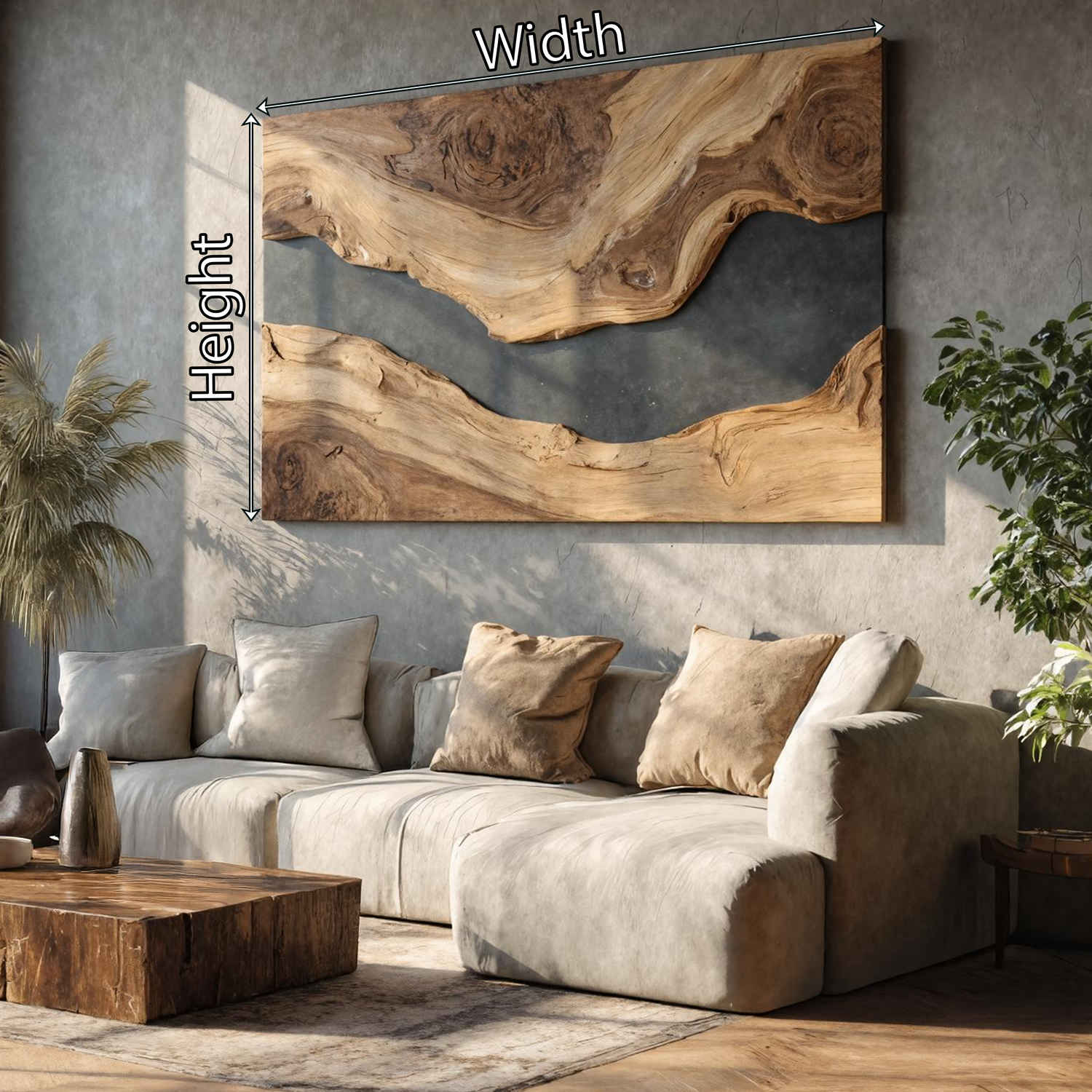 This wall-mounted sculpture blends fluid, organic contours with minimalist elegance. Hand-carved from solid hardwood, the rhythmic folds resemble ocean tides frozen in motion. The golden-toned wood grain is accentuated by deep charcoal edges, creating a striking interplay of warmth and contrast. Designed with a hidden mount, the piece floats seamlessly against your wall, enhancing its sculptural presence.