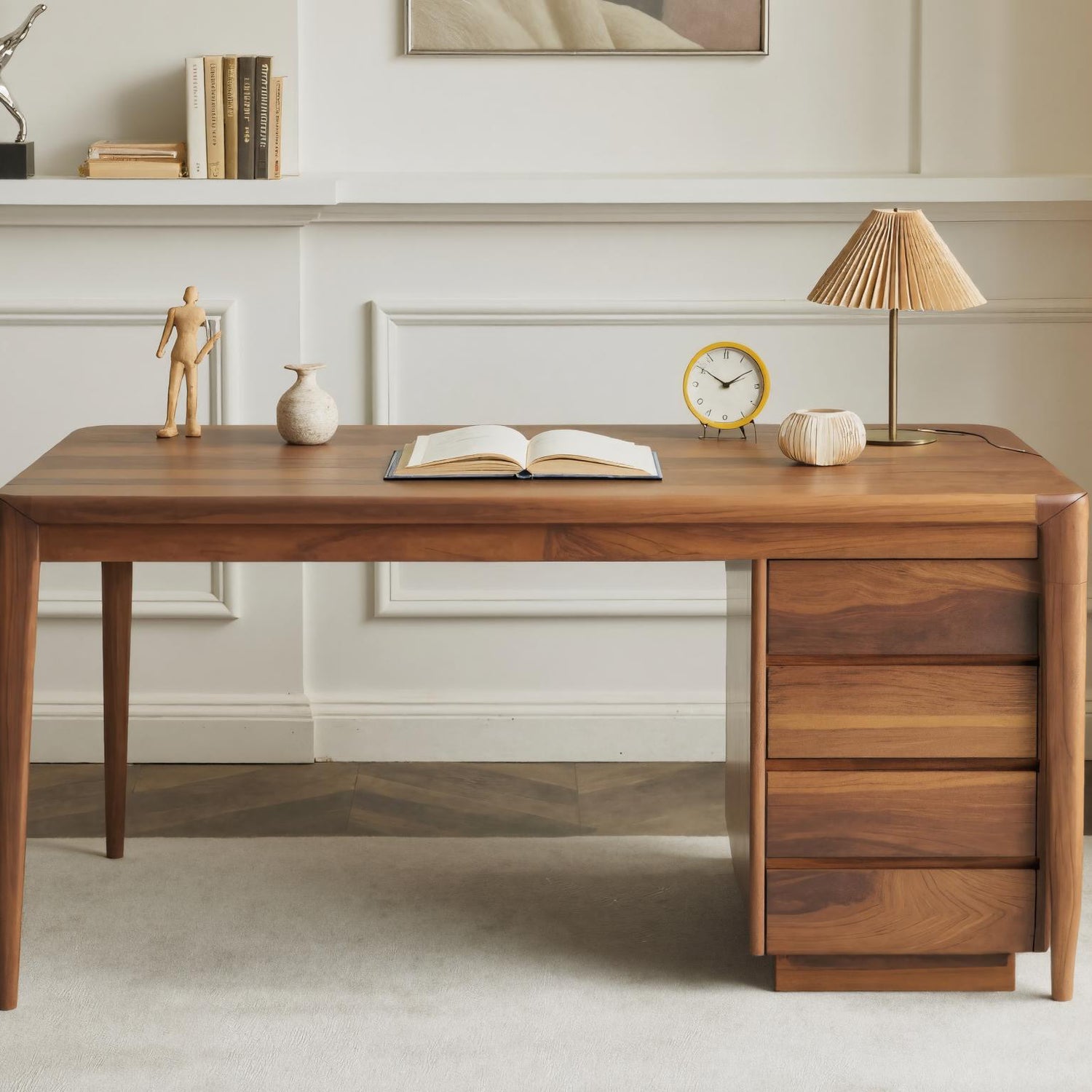 Elevate your workspace with the Modern Writing Desk With Drawers For Home Office, designed to combine elegance and function in a refined form. Its clean silhouette and natural wooden tones create a warm yet professional atmosphere, making it a versatile piece for any interior.