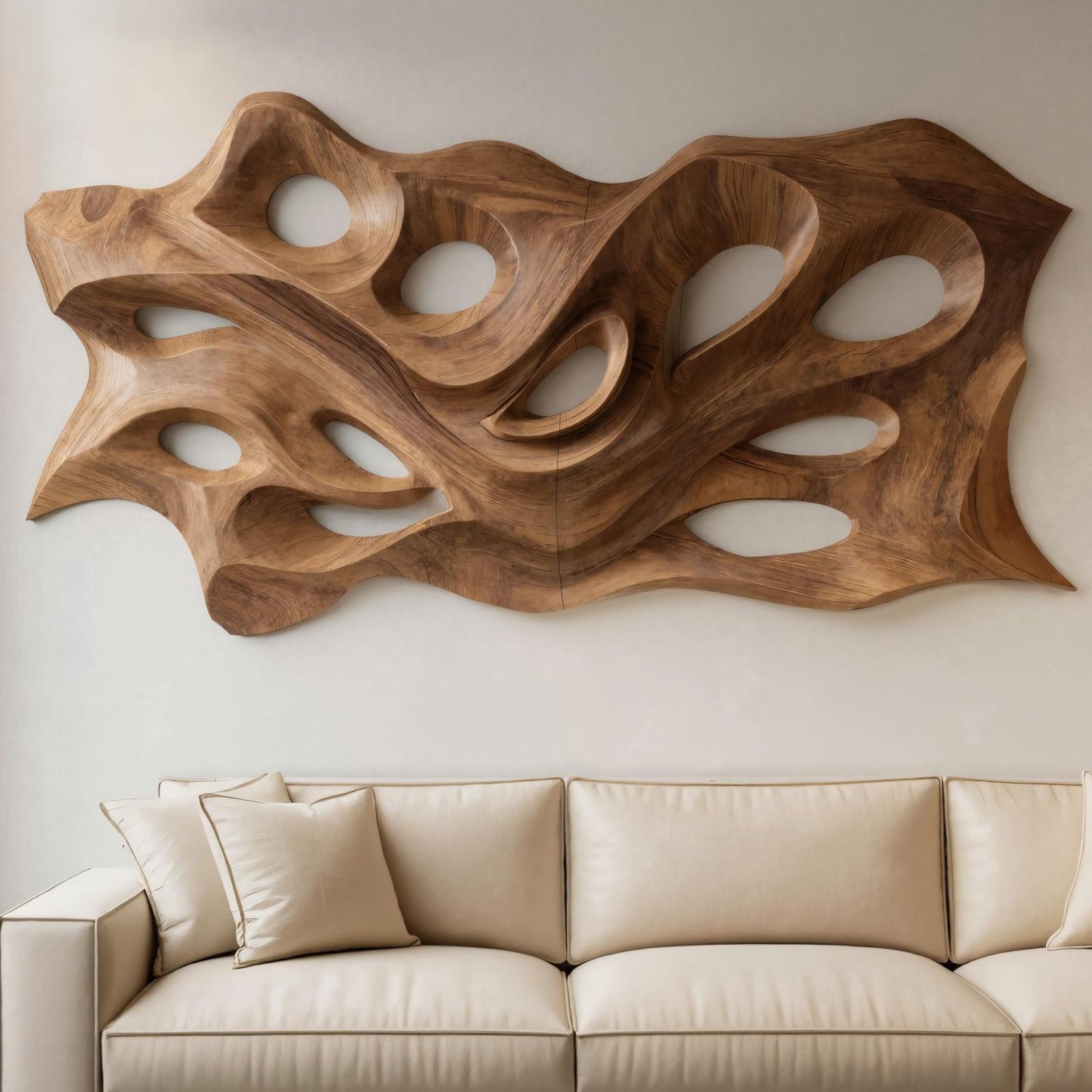 Transform your space with our Organic Sculptural Wall Art Panel For Living Room, a captivating piece that merges natural fluidity with artistic expression. Its dynamic form and intricate carving create depth and movement, turning your wall into a focal point that radiates warmth and sophistication.
