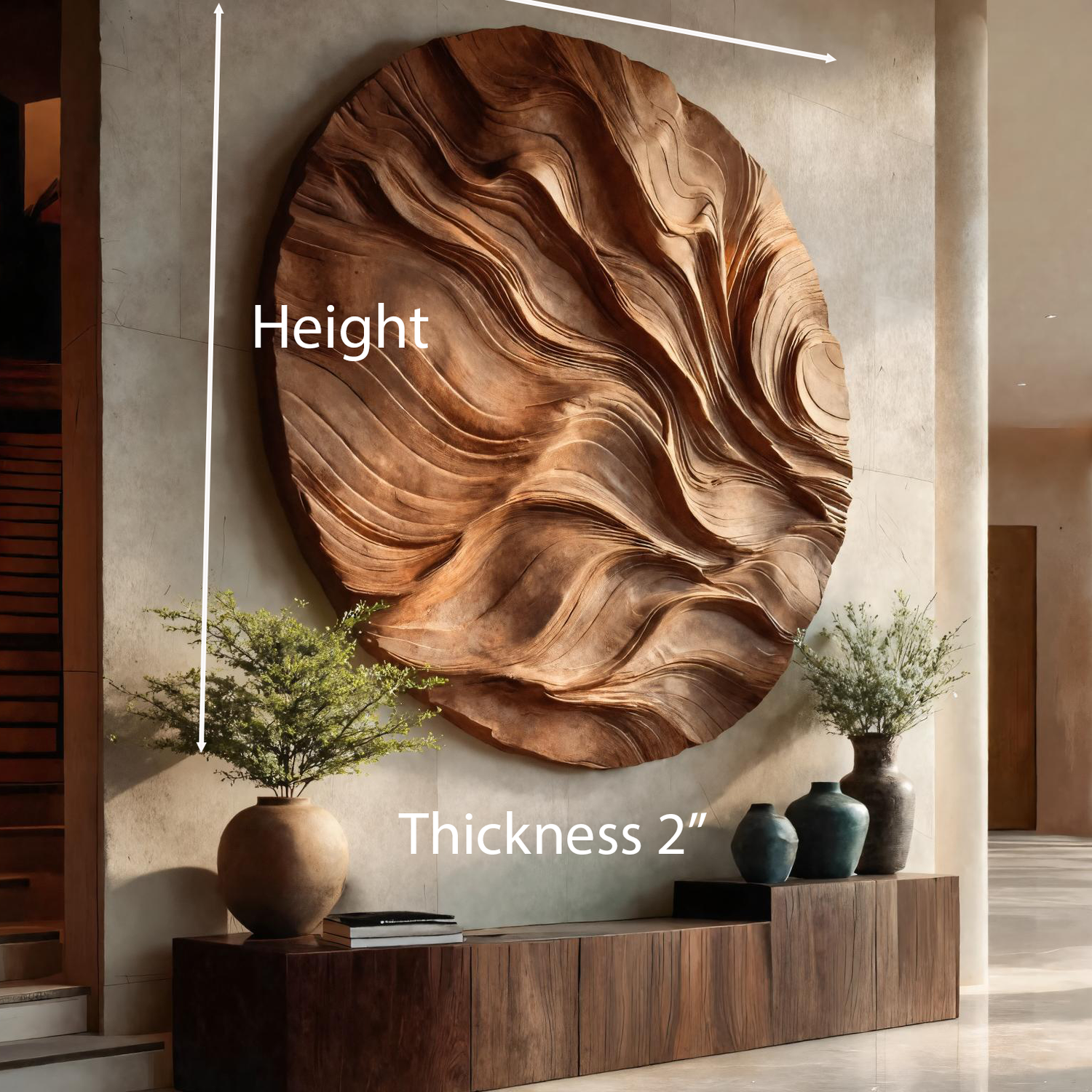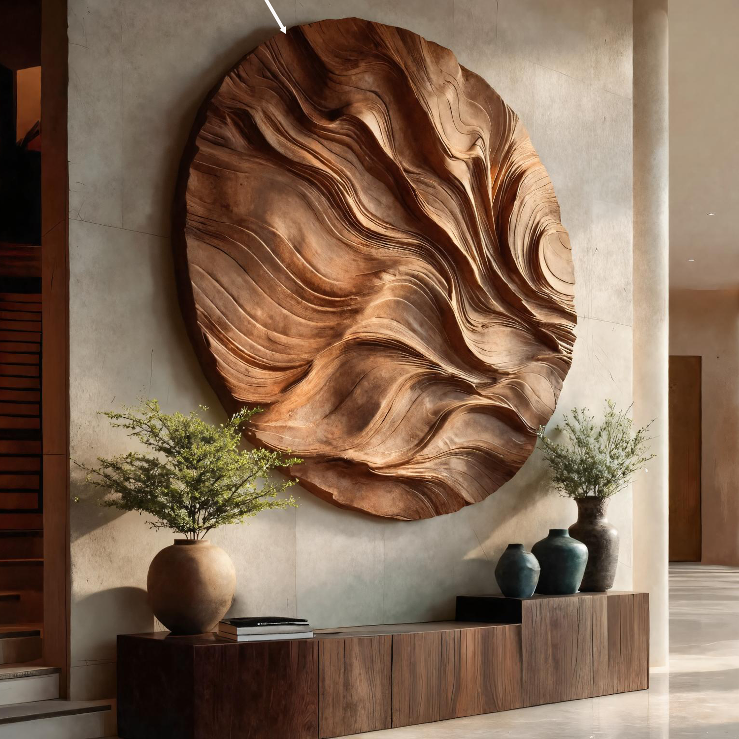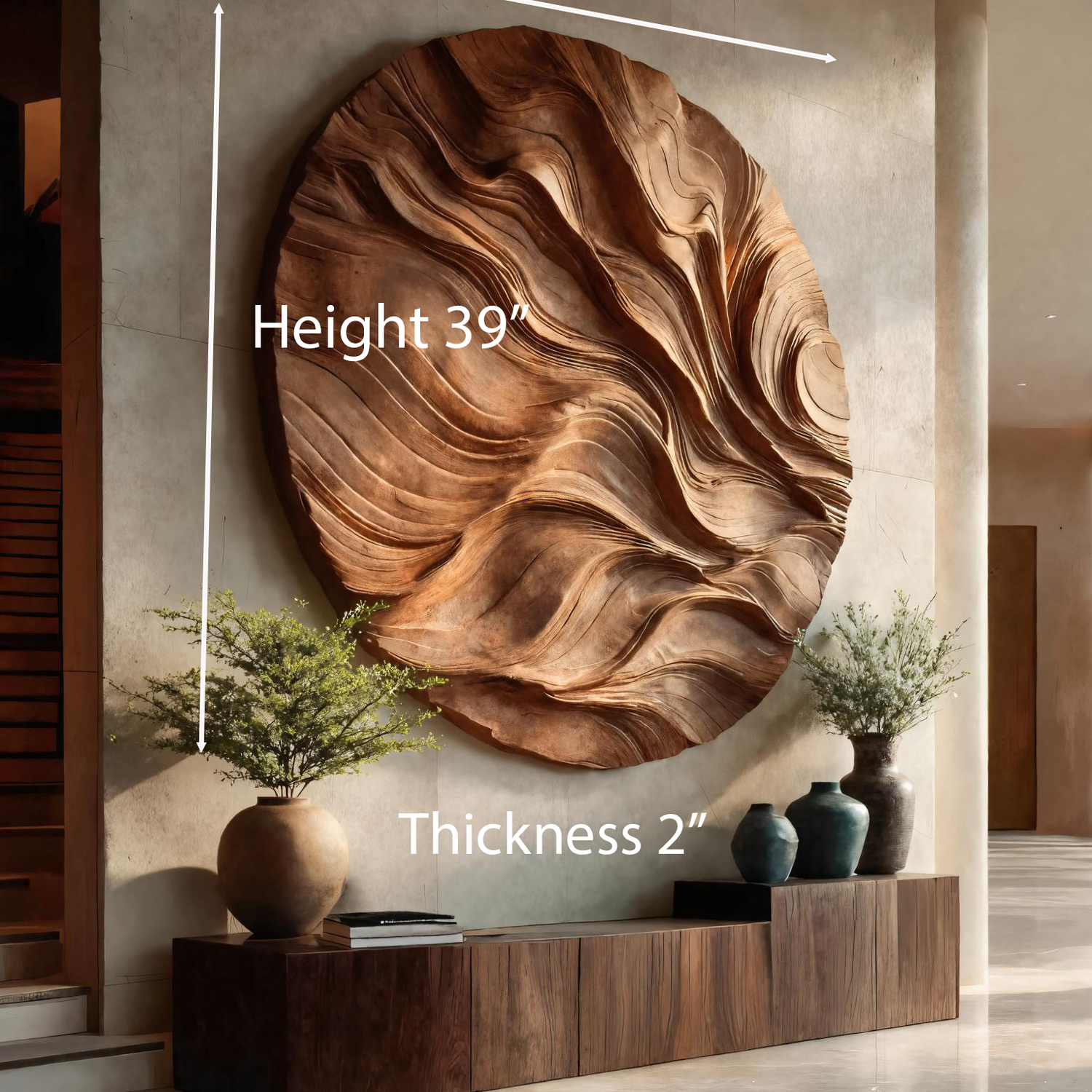 Elevate your interior with our Round Carved Wall Sculpture For Living Room, a striking centerpiece that combines flowing artistry with timeless form. Designed to captivate, its intricate carved lines ripple across the circular surface, creating a sense of natural rhythm and dynamic elegance that enhances any wall it graces.