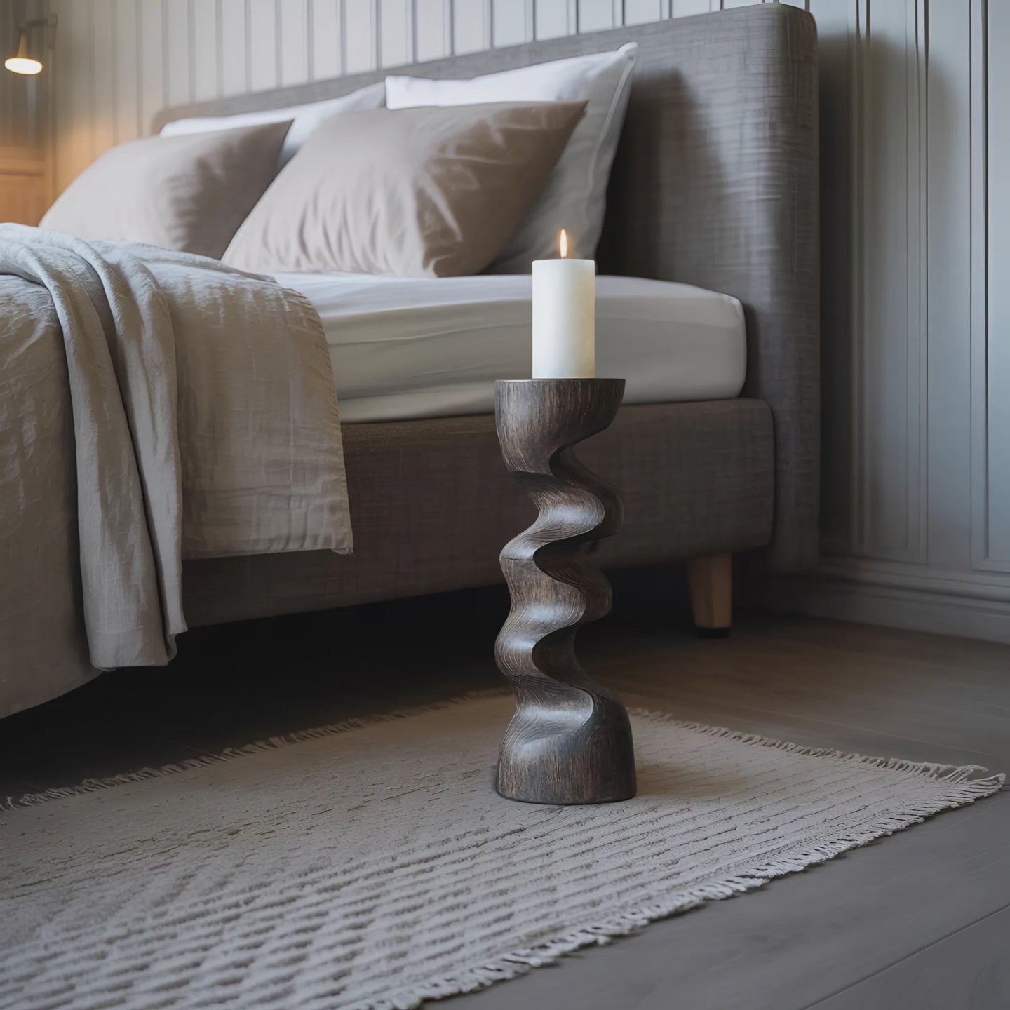 Create a cozy atmosphere with the Rustic Candle Stick For Bedroom Cozy Ambience Styling. Crafted with gentle curves and natural character, this piece blends rustic charm with timeless elegance. Ideal for bringing a warm glow or enhancing your bedroom décor, it offers both functional use and decorative appeal in one refined accent.
