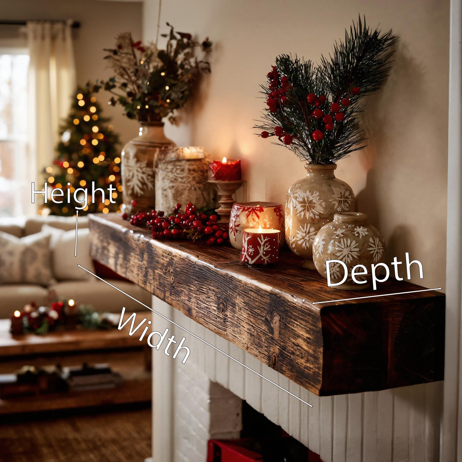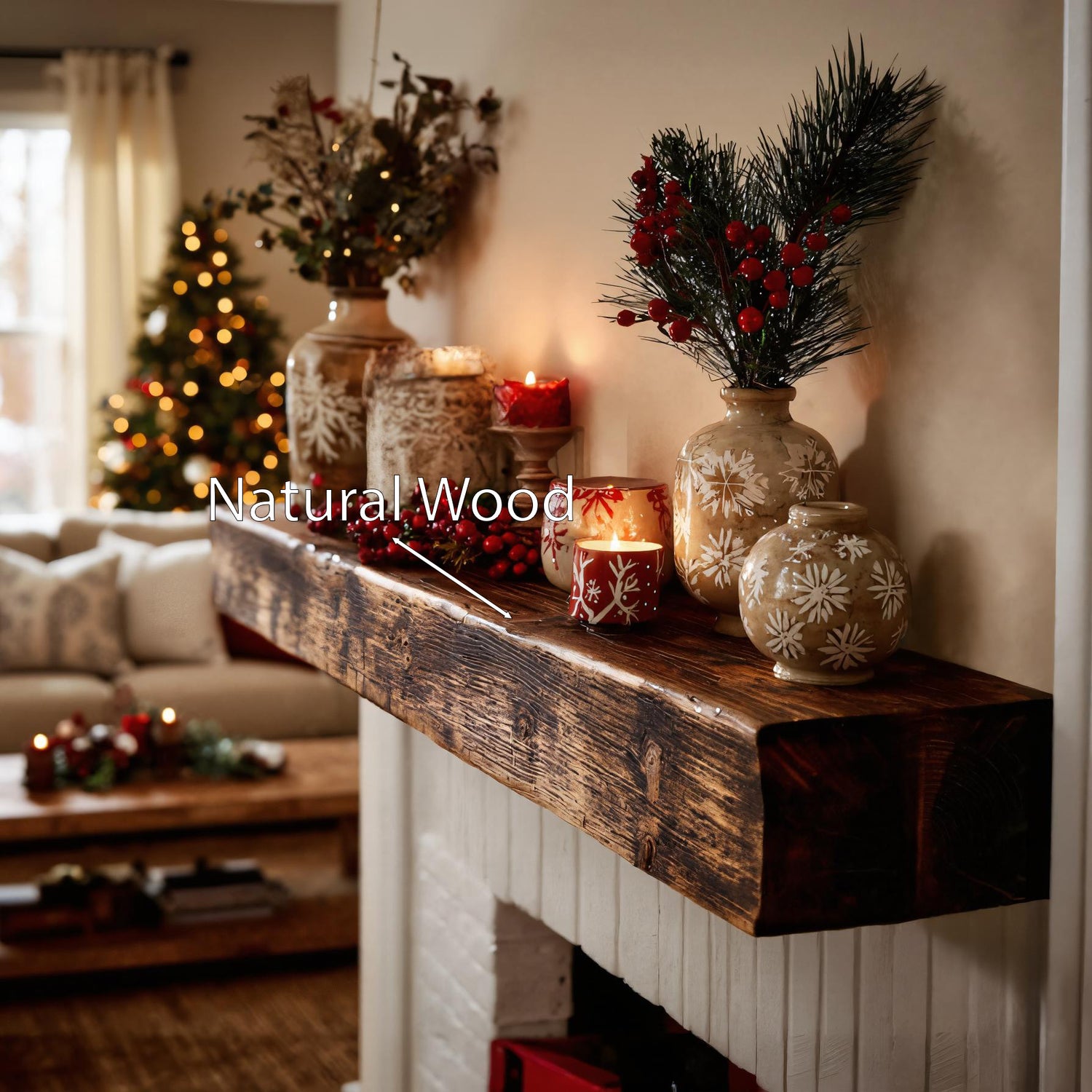 This mantel shelf features a bold rustic silhouette with a textured surface that highlights the authentic beauty of solid wood. The clean lines contrast with the organic grain, creating a balance of simplicity and natural artistry. Perfect for displaying seasonal décor, candles, or cherished keepsakes, it transforms your fireplace into a centerpiece of warmth and style.