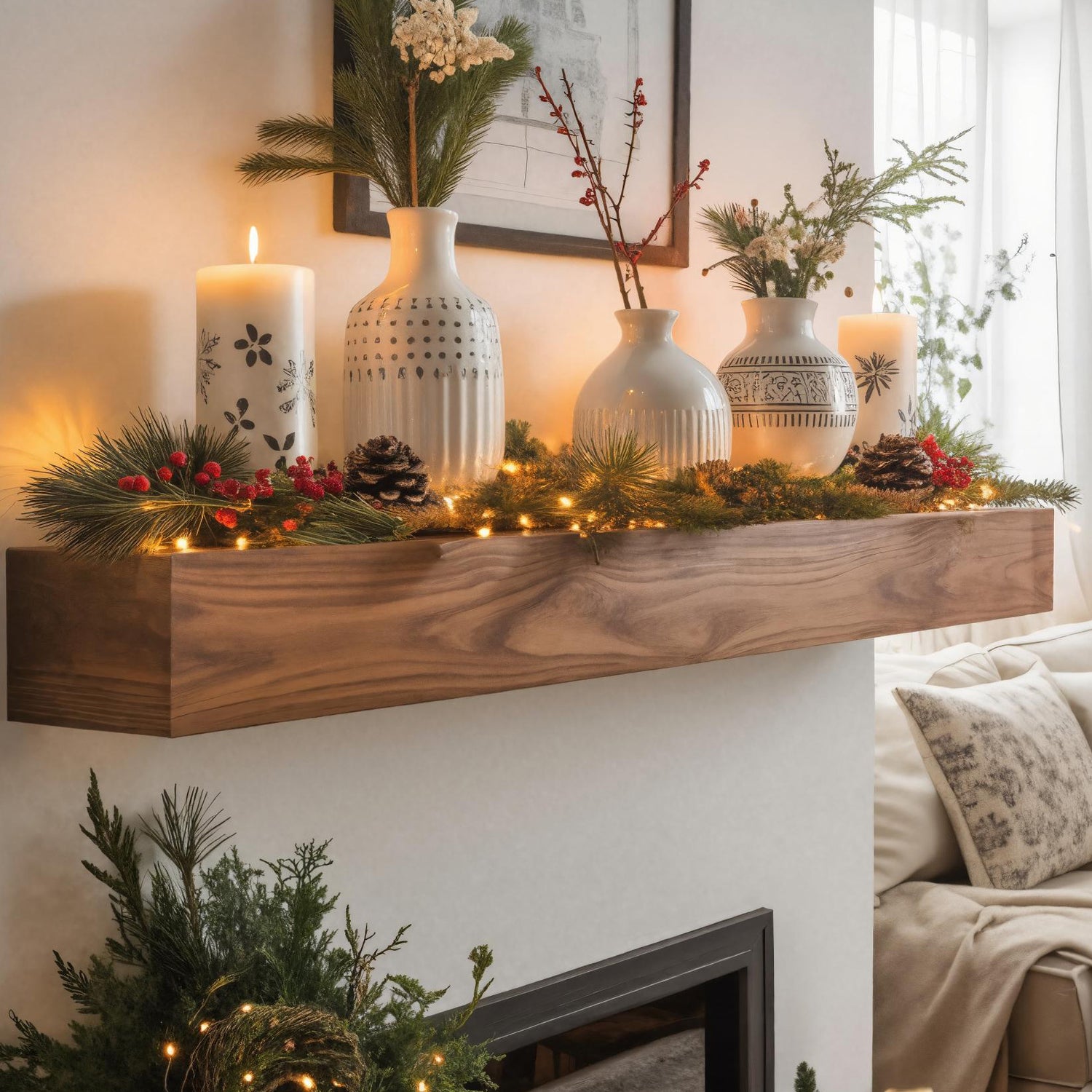This mantel shelf features rustic design with clean lines and timeless wood grain, making it versatile for year-round use. Ideal for displaying candles, vases, family keepsakes, or holiday decorations, it brings character and elegance to your fireplace, living room, or dining area.