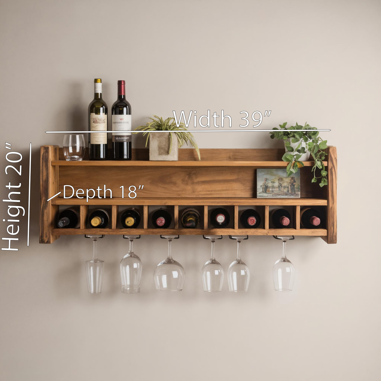 - Wall-mounted wine display for kitchens and dining rooms
