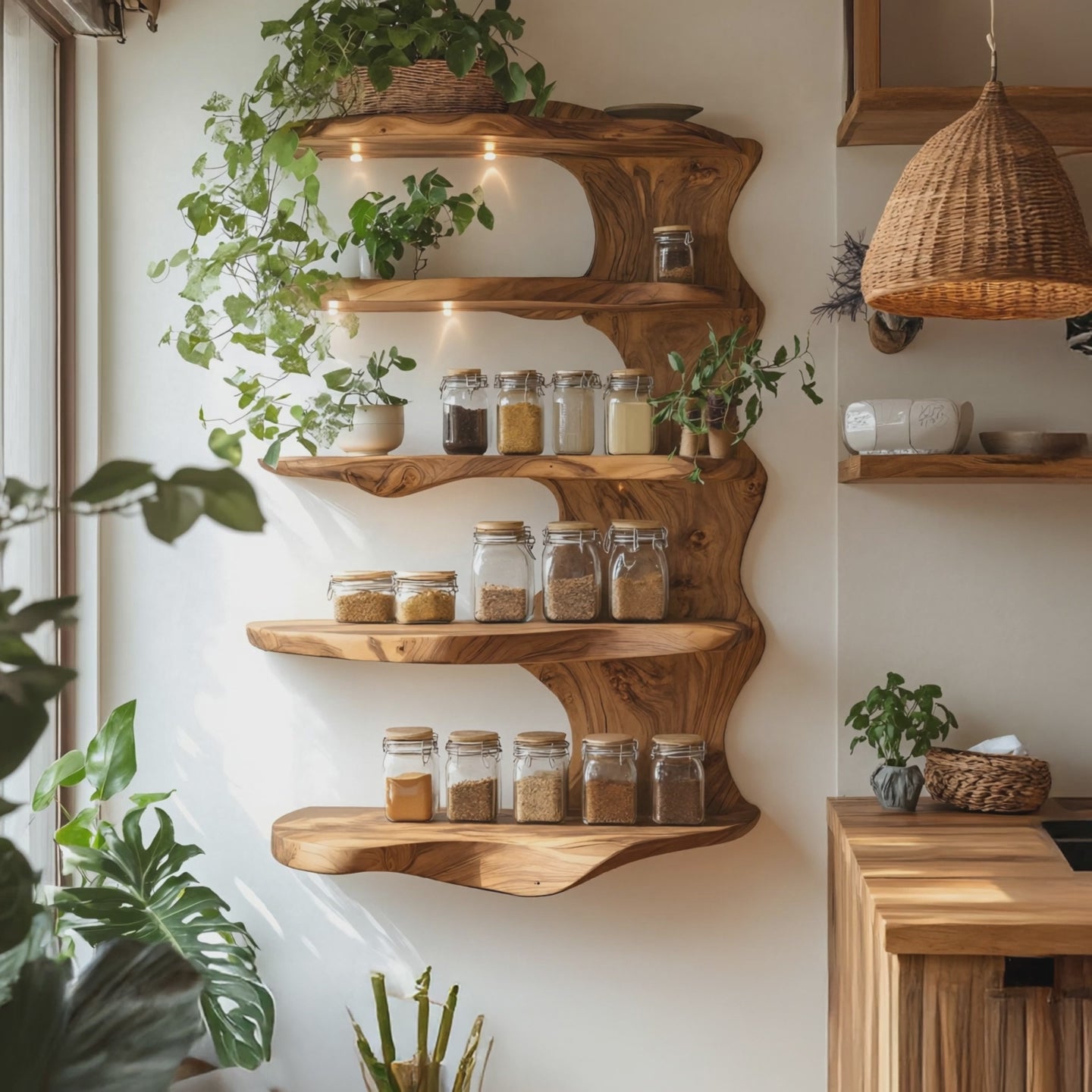 This spice rack showcases the flowing, natural edge of solid Monkeypod wood—each curve telling a unique story of its grain. Its sculpted silhouette brings organic warmth to your kitchen, pantry, or coffee station. Designed for both beauty and utility, the shelf offers generous storage while maintaining a clean, airy look that complements any interior style.