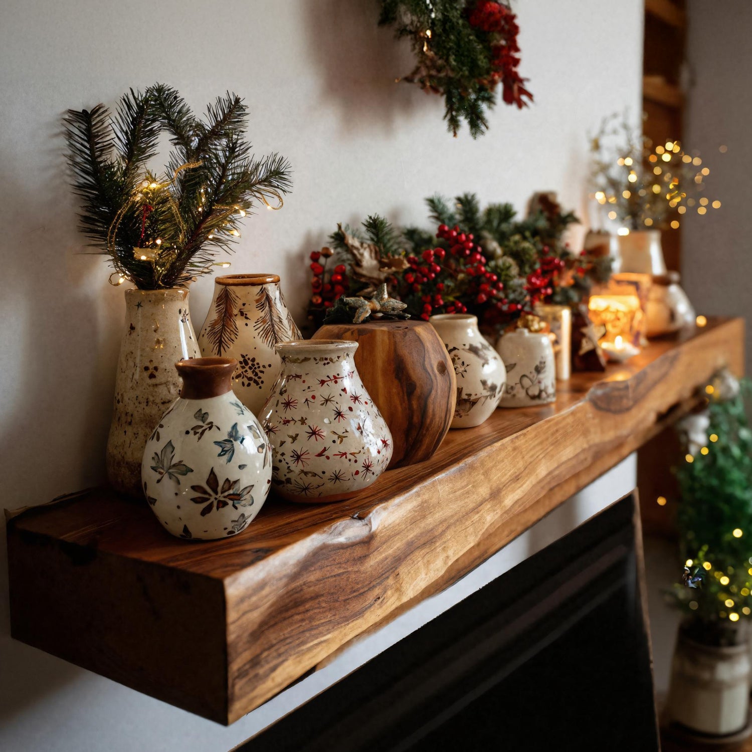 This mantel shelf features rustic design with live edge detailing that preserves the organic flow of the wood. Its timeless form blends seamlessly into both cozy and contemporary interiors, making it a versatile focal point above fireplaces, in dining rooms, or as a wall-mounted accent shelf.