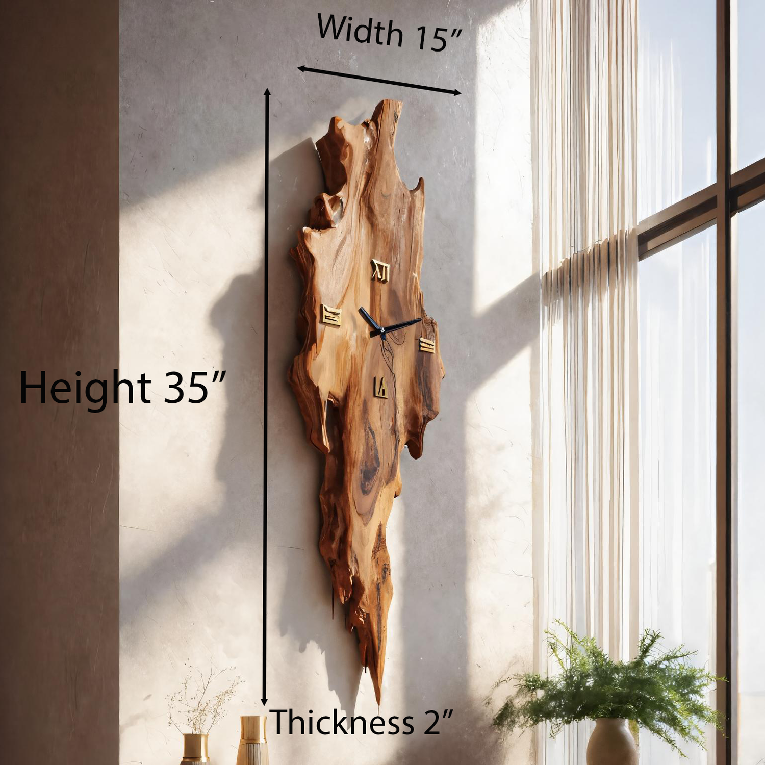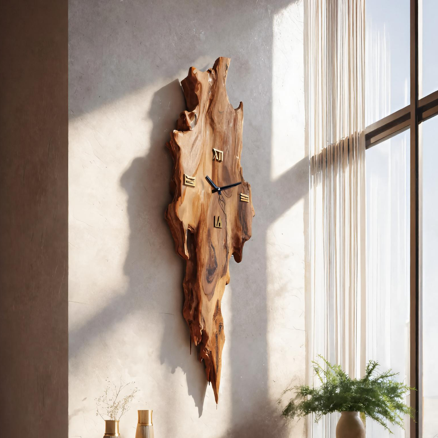 Bring the raw charm of nature into your home with the Rustic Wall Clock With Natural Edge Design For Bedroom. Featuring an elongated vertical silhouette with a striking organic edge, this handcrafted piece transforms a functional timepiece into a sculptural accent that enhances any interior with warmth and artistry.