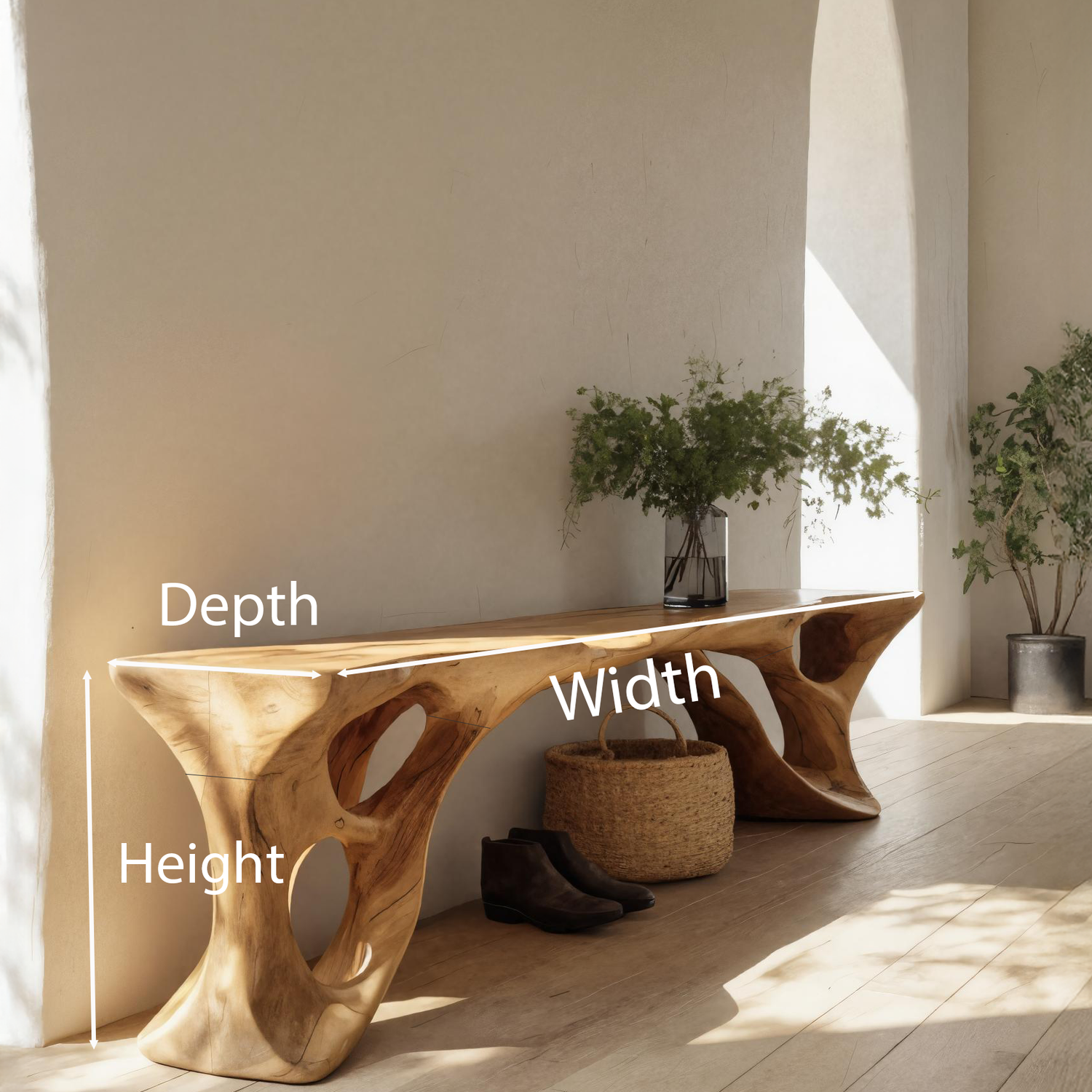 Add sculptural elegance to your home with our Sculptural Bench With Carved Design For Entryway, crafted to merge organic artistry with everyday function. Its fluid silhouette and carved openings bring lightness and visual rhythm, transforming a simple bench into a striking statement piece.