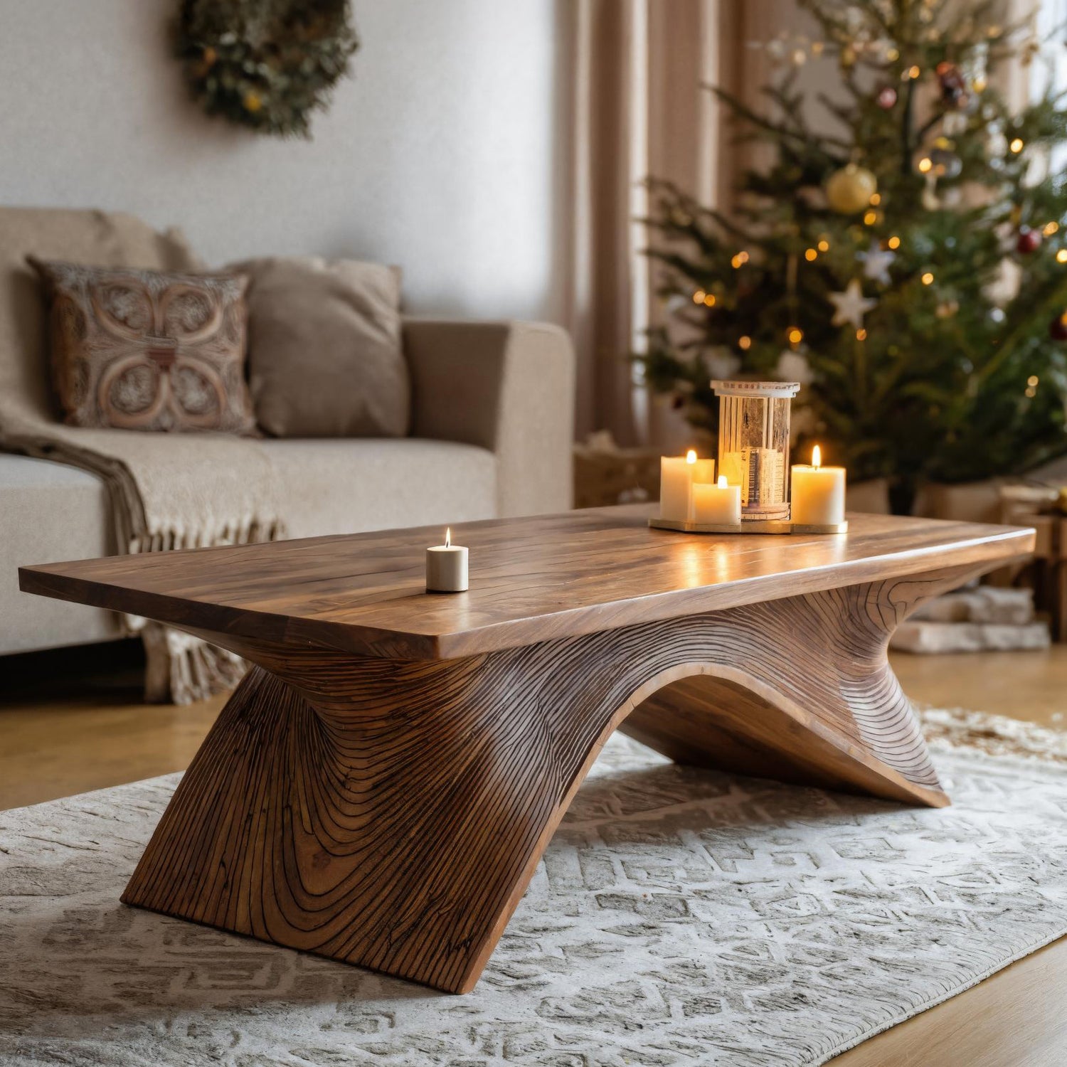 Celebrate the art of natural form with our Sculptural Coffee Table With Curved Base For Holiday Decoration, designed to bring harmony and warmth to your festive home. Its sweeping base and smooth tabletop create a refined yet grounded centerpiece — perfect for gatherings, candle displays, or quiet winter evenings.
