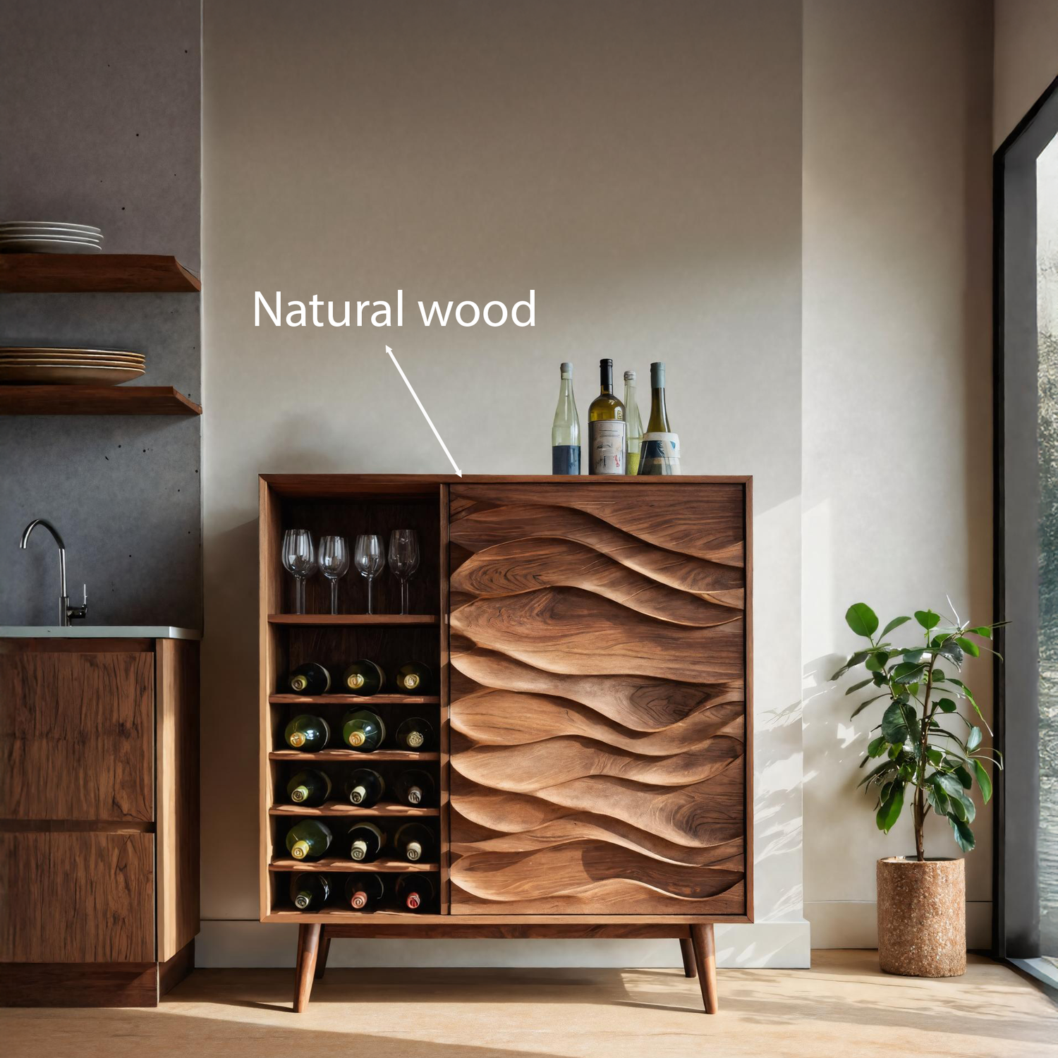 Sculptural Wine Cabinet With Wave Carved Doors For Kitchen